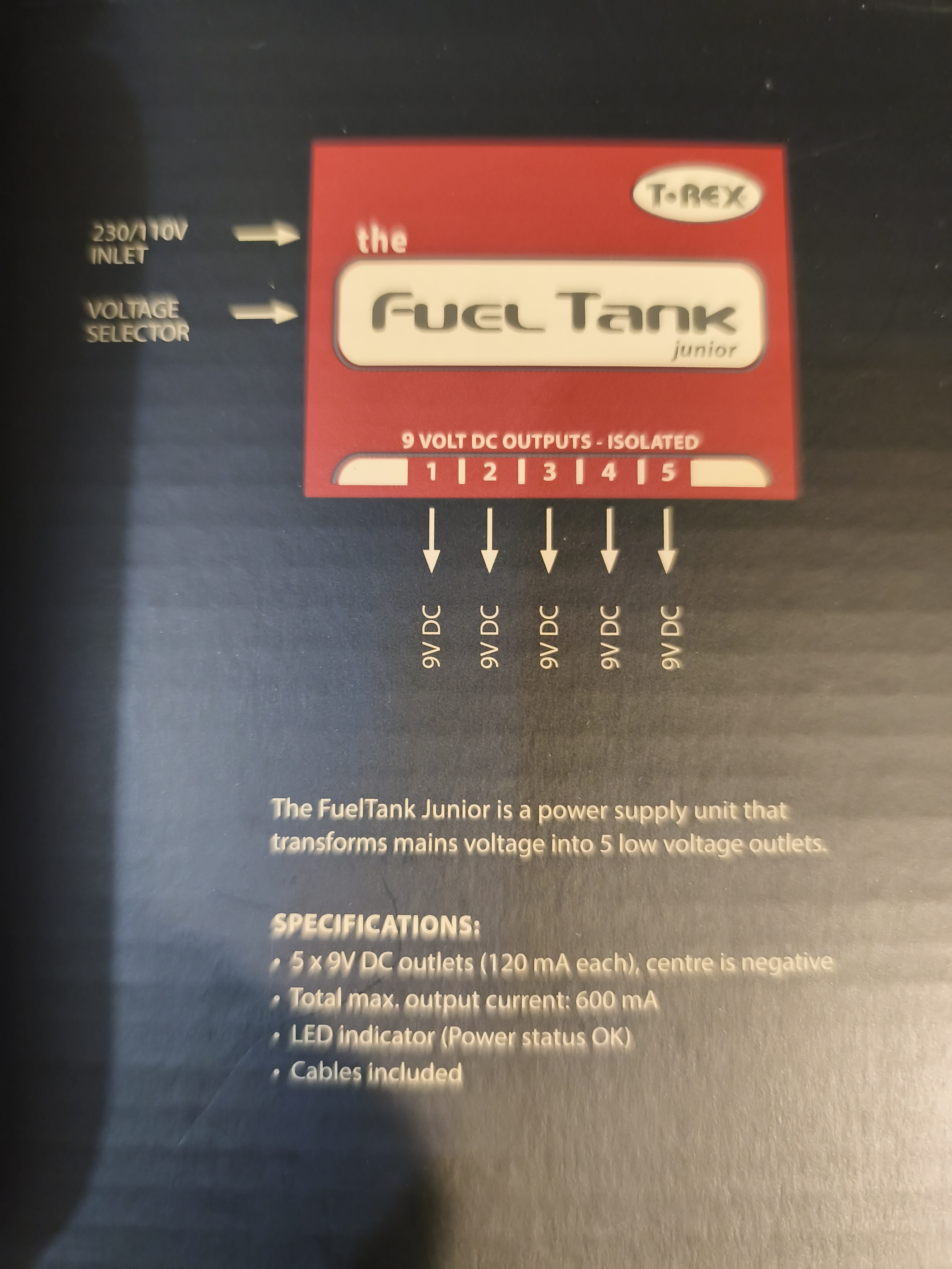 The Fuel Tank Jr. is a power supply with 5 separate outputs (9V/120mA)