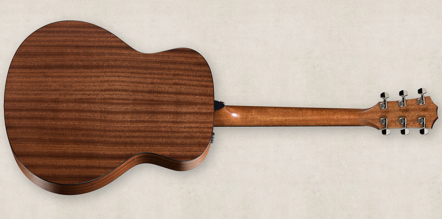 All these guitars received a special Shaded Edgeburst mahogany top for a vintage look, back and sides are made of sapele. They also feature a mahogany neck, ebony fingerboard with 4mm Dot inlays and a rosewood veneer headstock. Taylor chose a satin finish and an Expression System 2 pickup/preamp is present on each model.