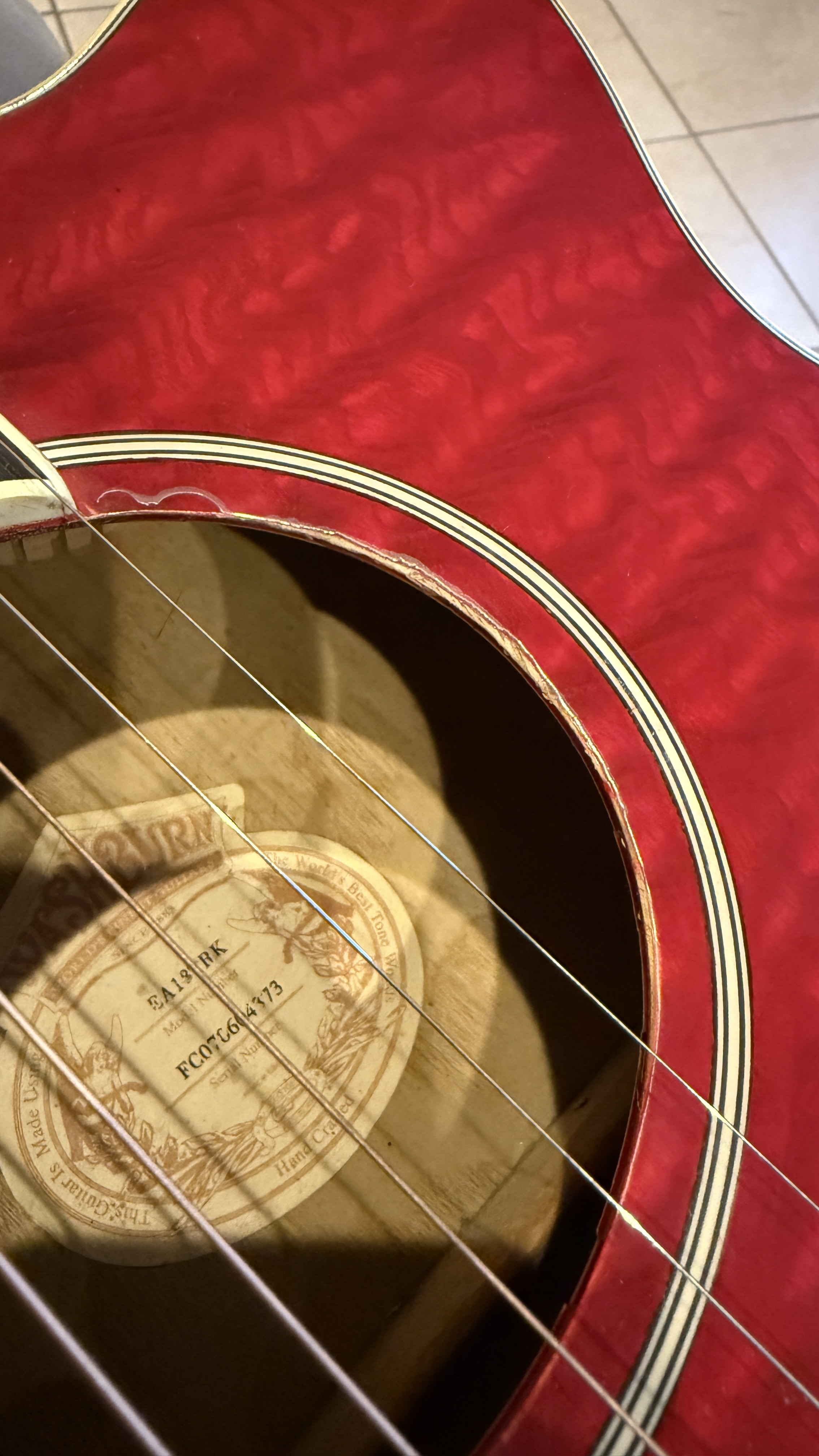 It's a beautiful instrument for one. The wood was matched near perfectly. Nice white binding around the body and soundhole. Great tone when playing without an amp. A nice balance of sounds and from highs to lows. The B Band pickup translates the sounds nicely when its plugged into an amp. Lots of control for sound quality.