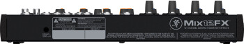- Mix12FX: 4 XLR and 1/4” jack mic/line inputs with 3-band EQ, 75Hz low-cut filter, pan, level, clipping indicator and phantom power ; 4 line inputs with +4/-10dB operation, balance, level and clipping indicator ; 12 built-in effets (reverbs, chorus and delays), stereo RCA inputs/outputs, L/R main outputs with 60mm fader, stereo headphone and Control Room outputs. US price: $159.99