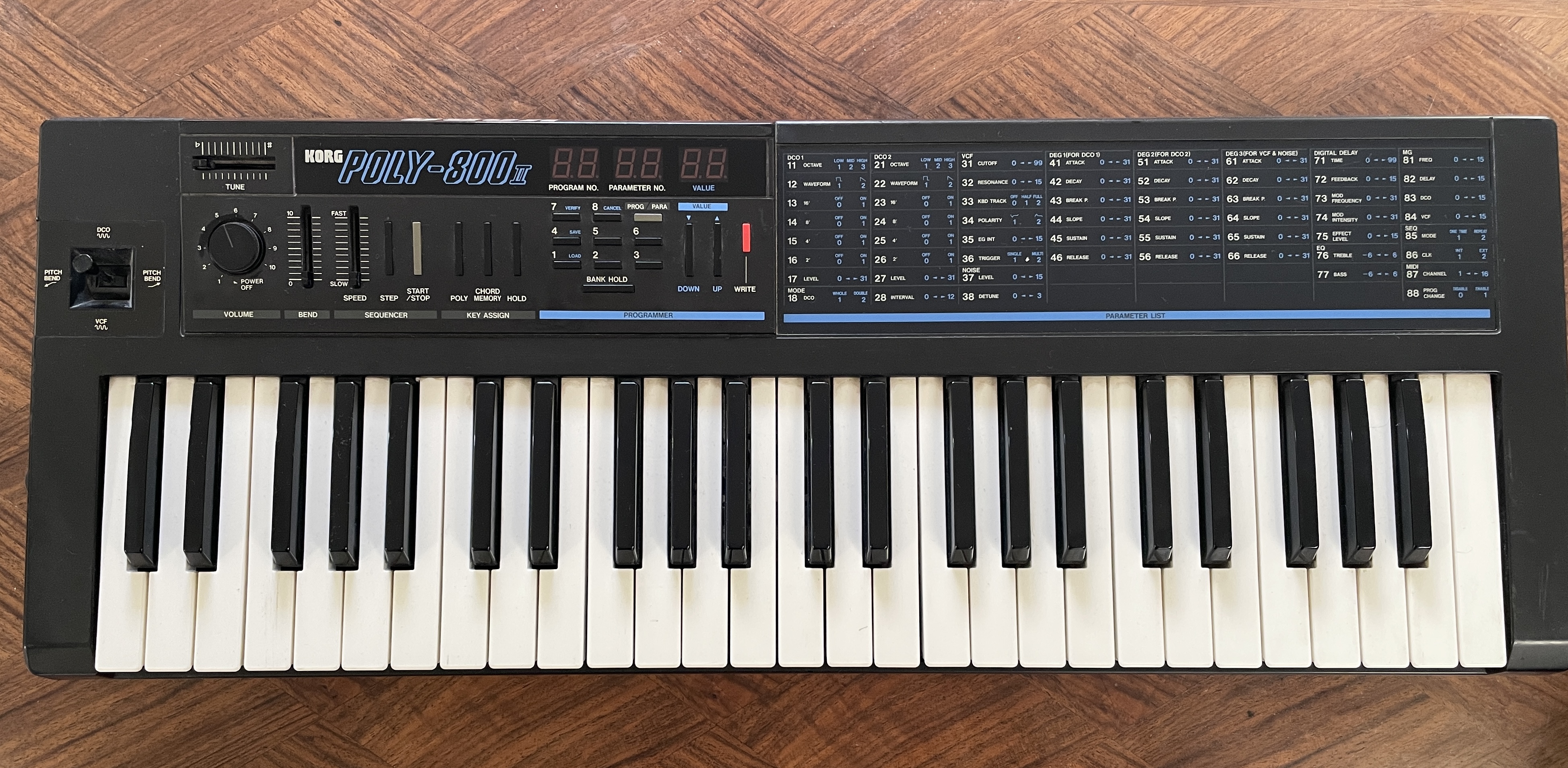 The sounds are classic sounds of the 80’s and some can still be used in todays music and still bring new flavor, t can be switched into double mode and that stacks two dco’s for fuller sound, much like you can on software today when you stack instruments. You could do it right on board with the Korg Poly, not many other boards allowed that to happen.