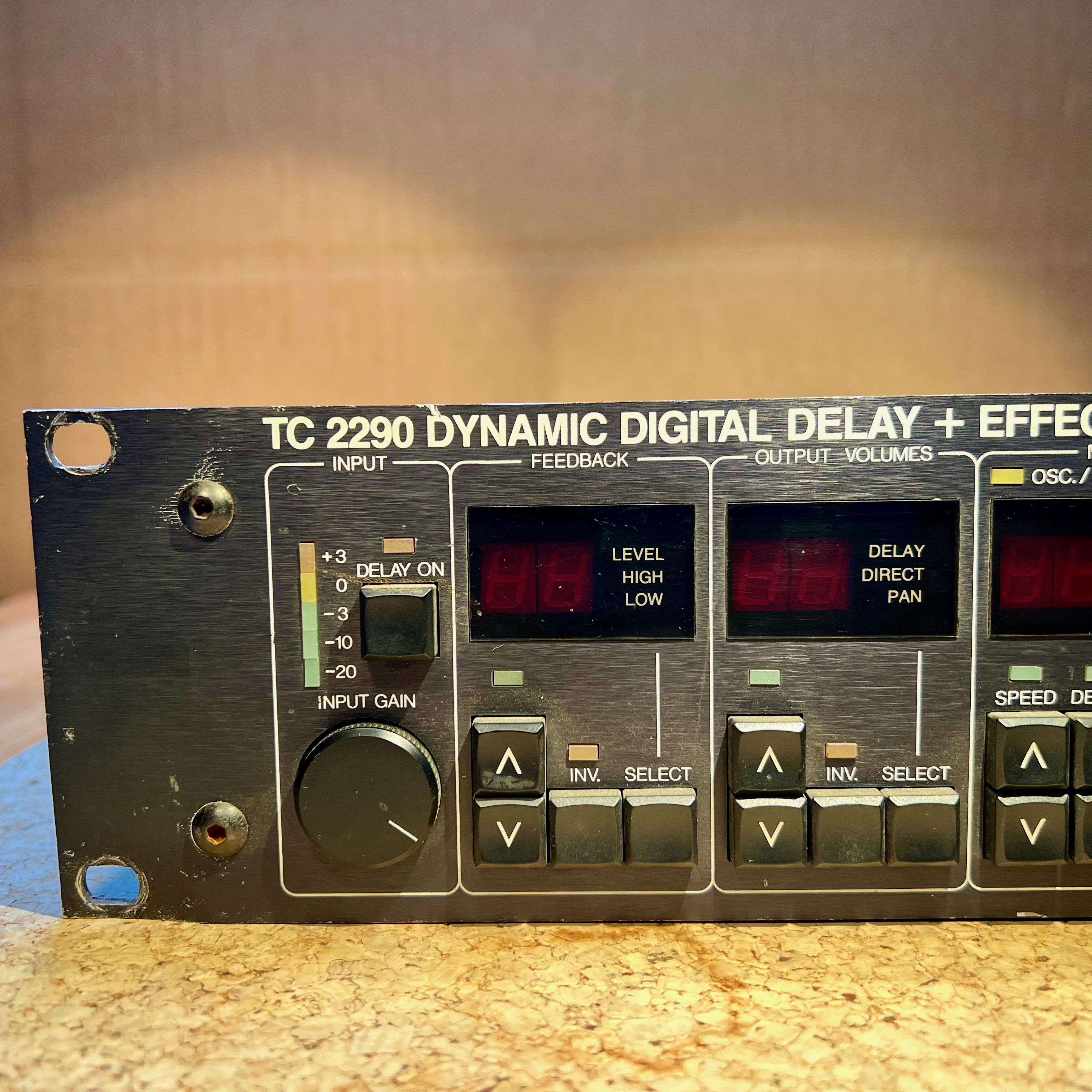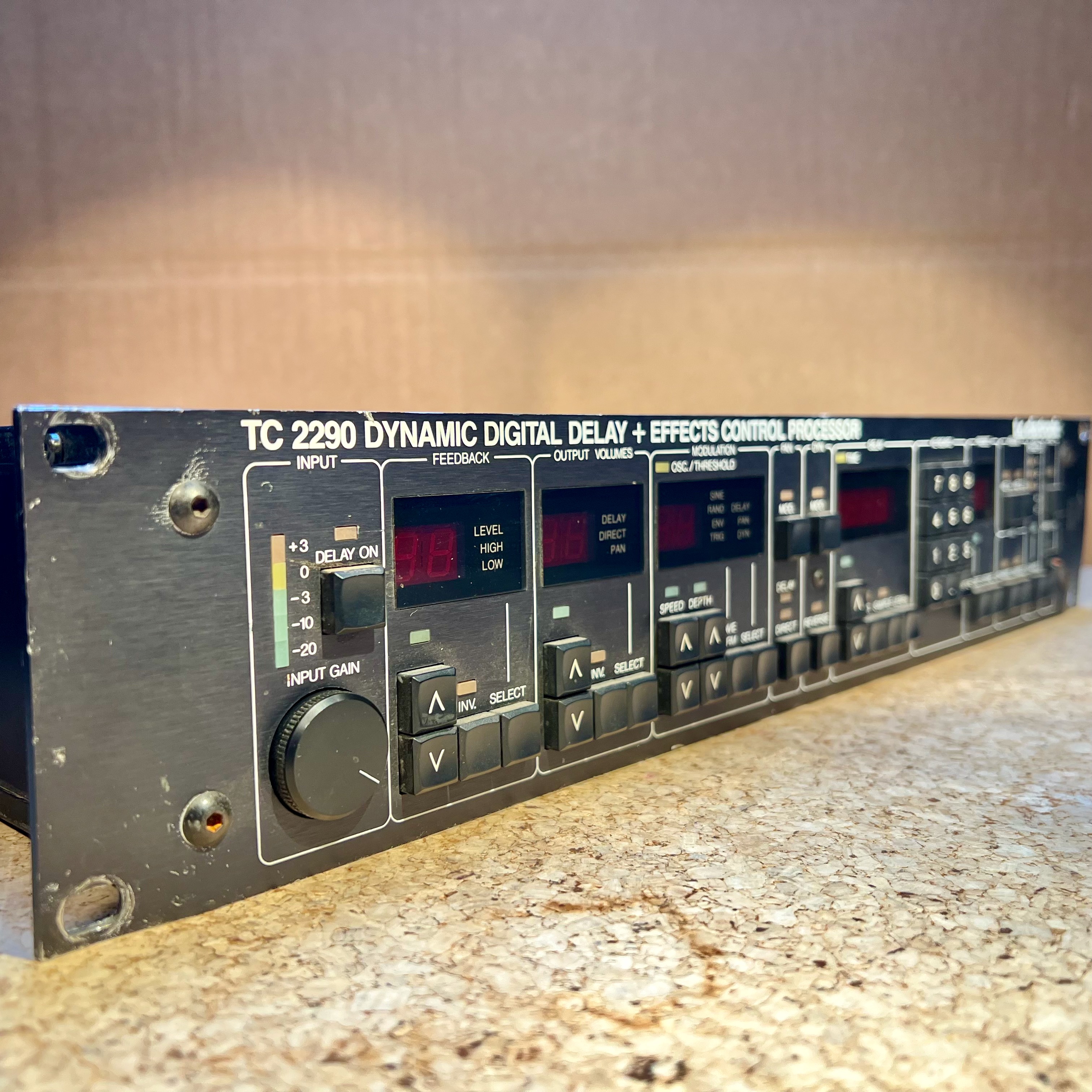 The TC Electronic TC 2290 is a rackable digital delay effects unit. It has the capability to make just about any type of delay sound you might be looking for, as it is quite a versatile unit. I'm not sure what kind of connections it has, but I believe that it has both XLR inputs and outputs and 1/4 inch inputs and outputs. I believe it also has MIDI ins and outs.