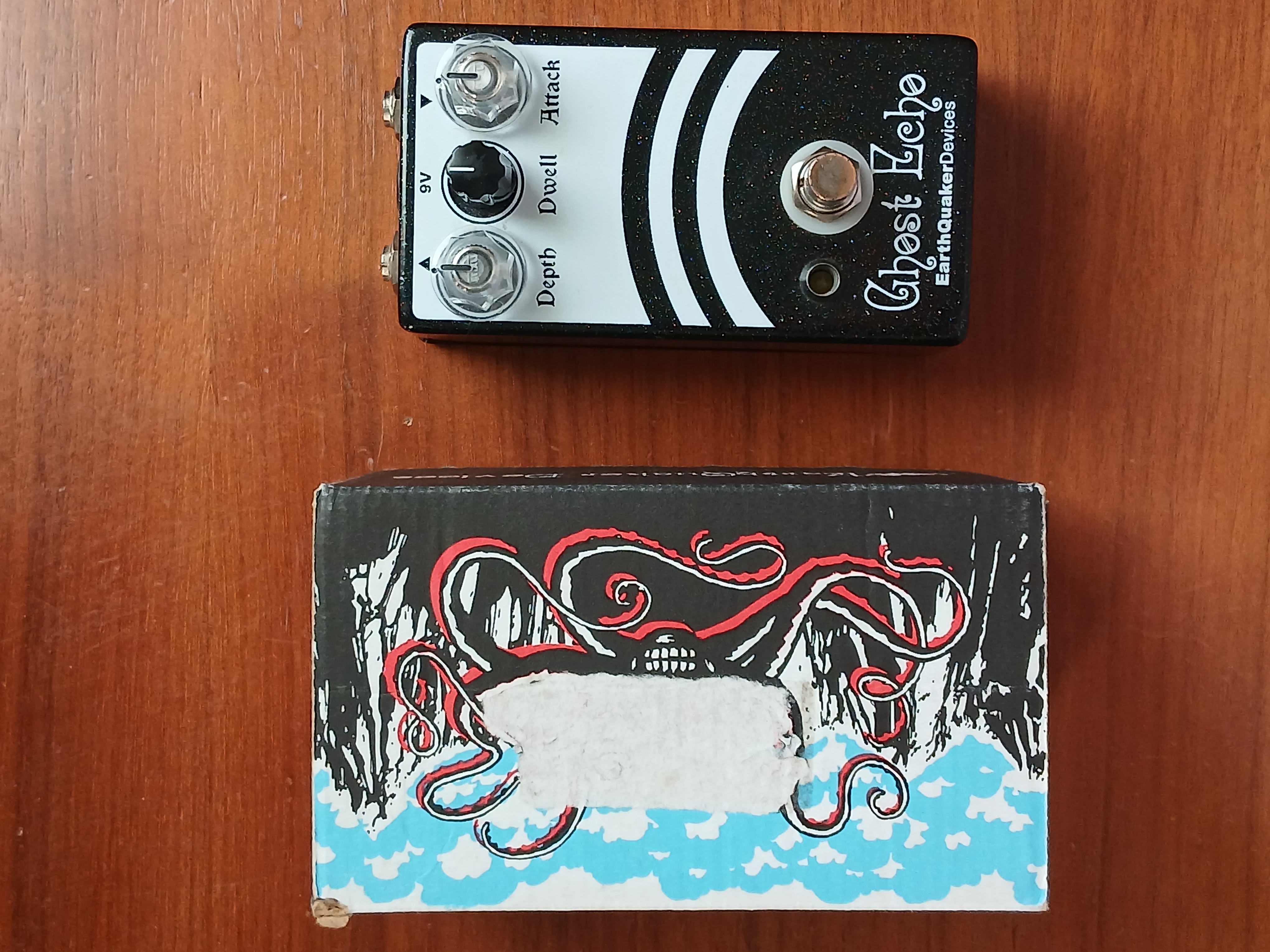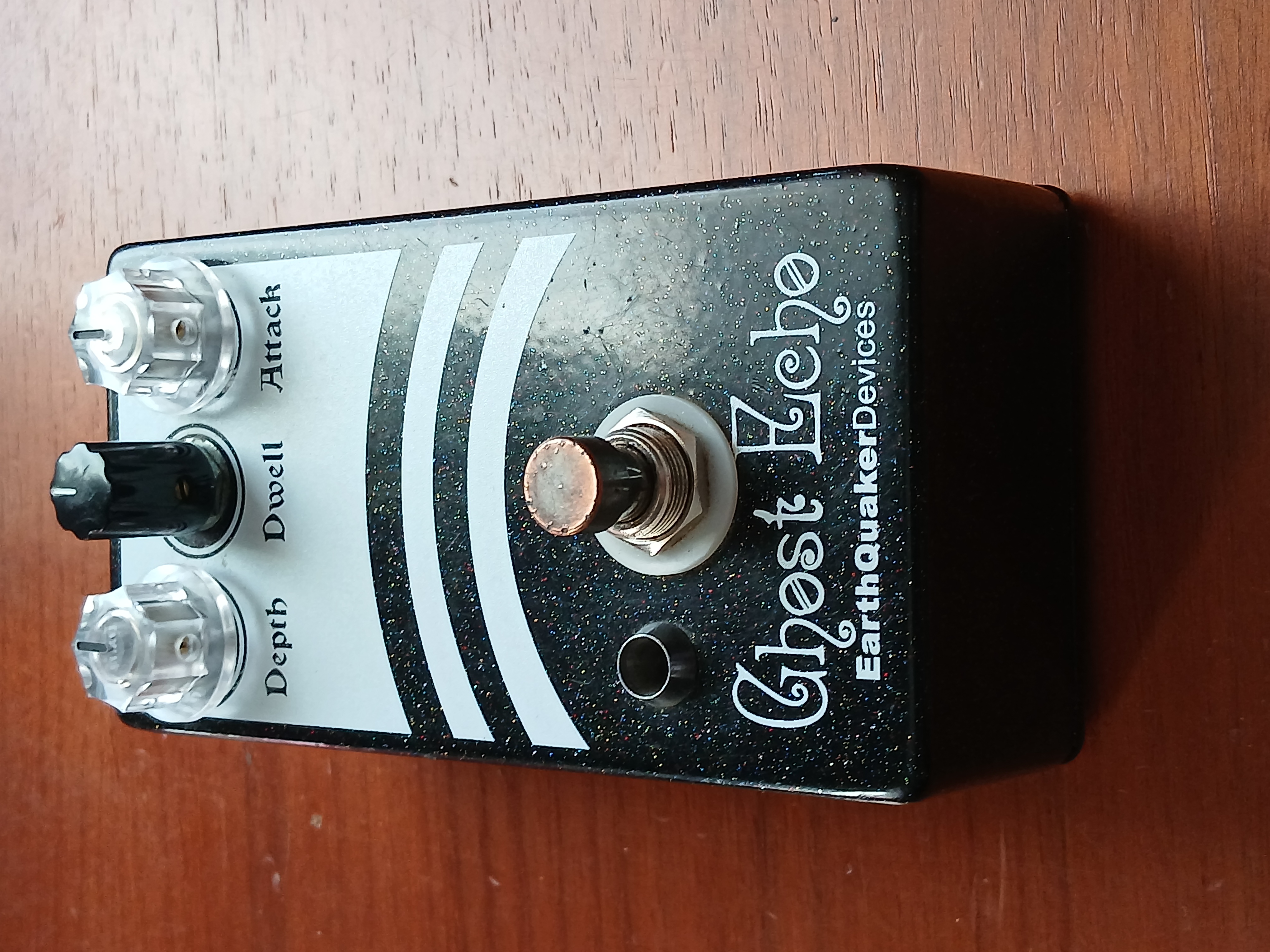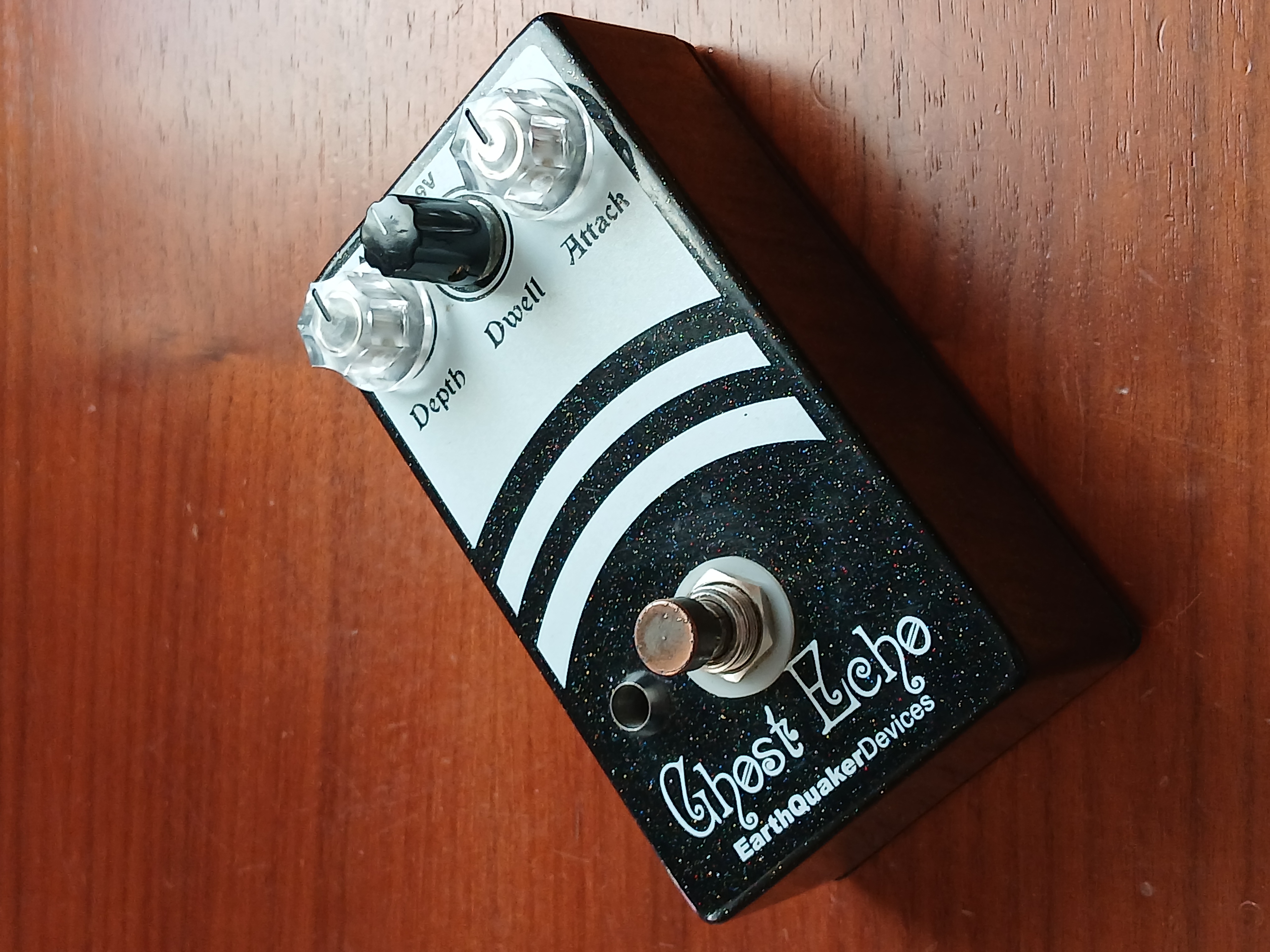 A most unexpected setting: "Attack", which is a sort of echo, delay, "slapback" (as in the rockabilly), which repeats the attack of the pick after a split second, and that makes it more more audible by turning the knob. It is undoubtedly he who gave his name ("ghost echo") to this pedal.