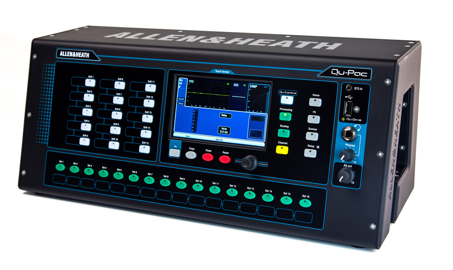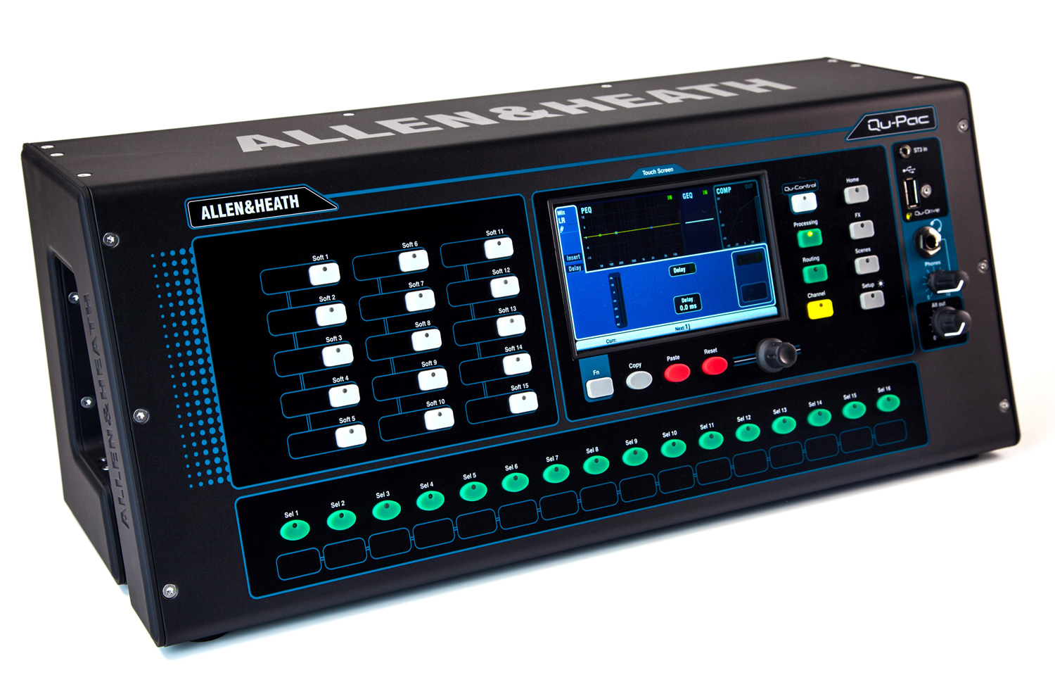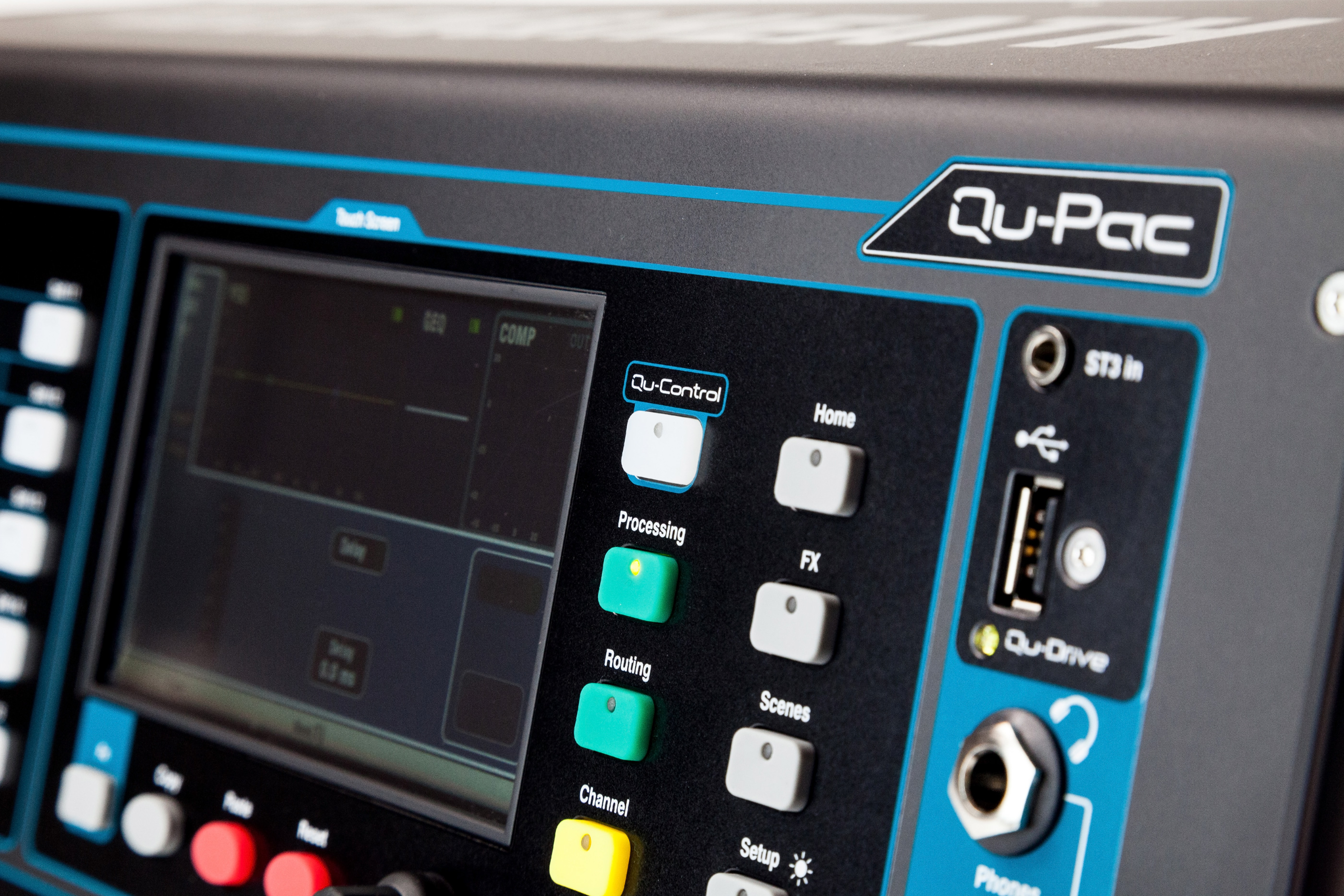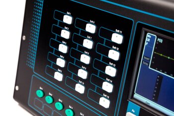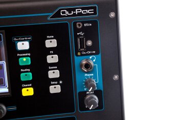 The new Qu-Pac features a touch screen and multiple control buttons on the front panel, but you can also manage it from an iOS device with the Allen & Heath apps.