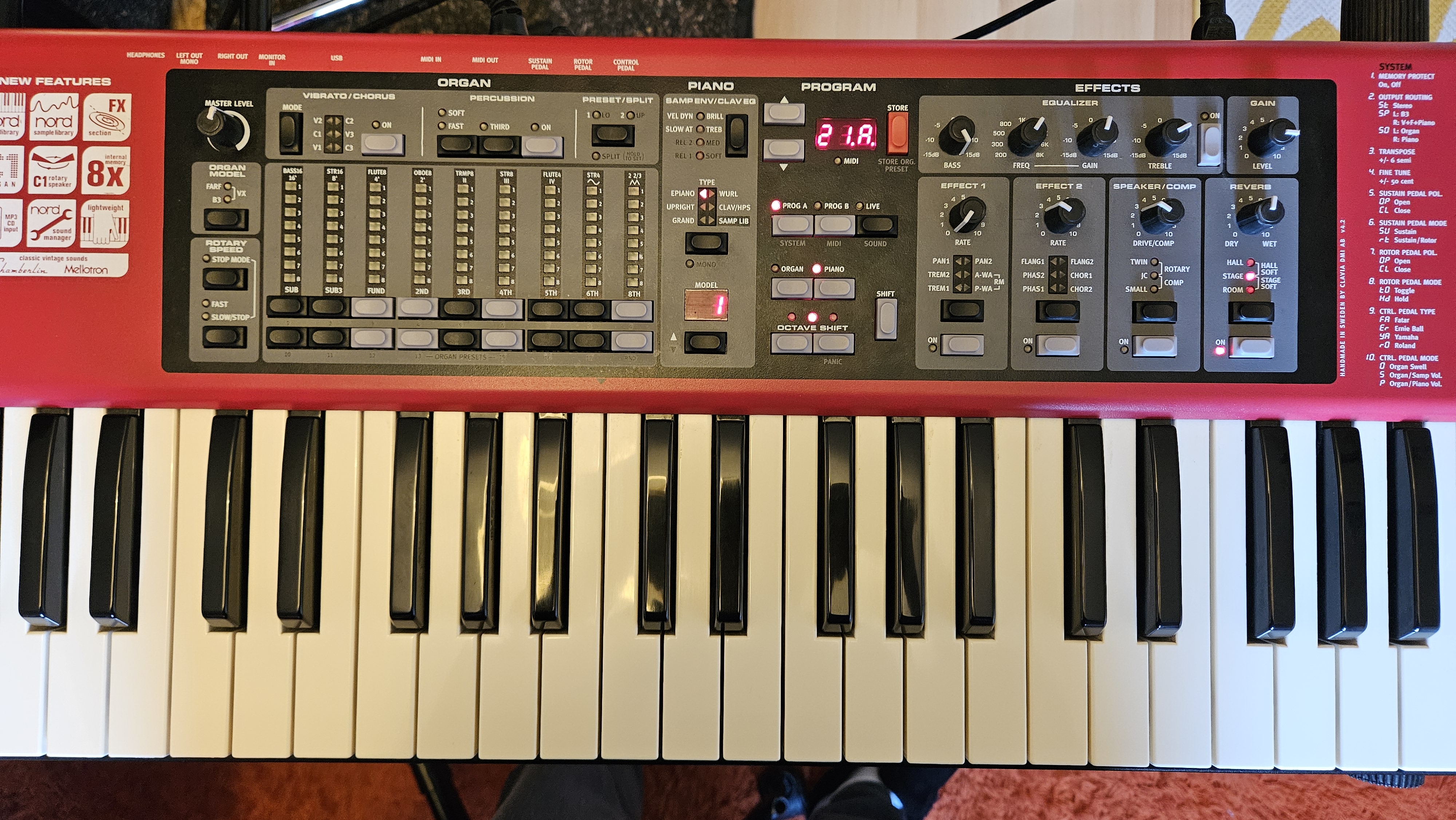 The organ sounds that this synth keyboard has are the best ones that Nord has ever had on any board they have come out with. These organs can compete with any sounding organ on any keyboard synth that has ever come out. That is how good they are, the downside of that is it lacks in the piano sounds. The piano sounds are useable but they are not as good as they should be considering how much this keyboard cost.