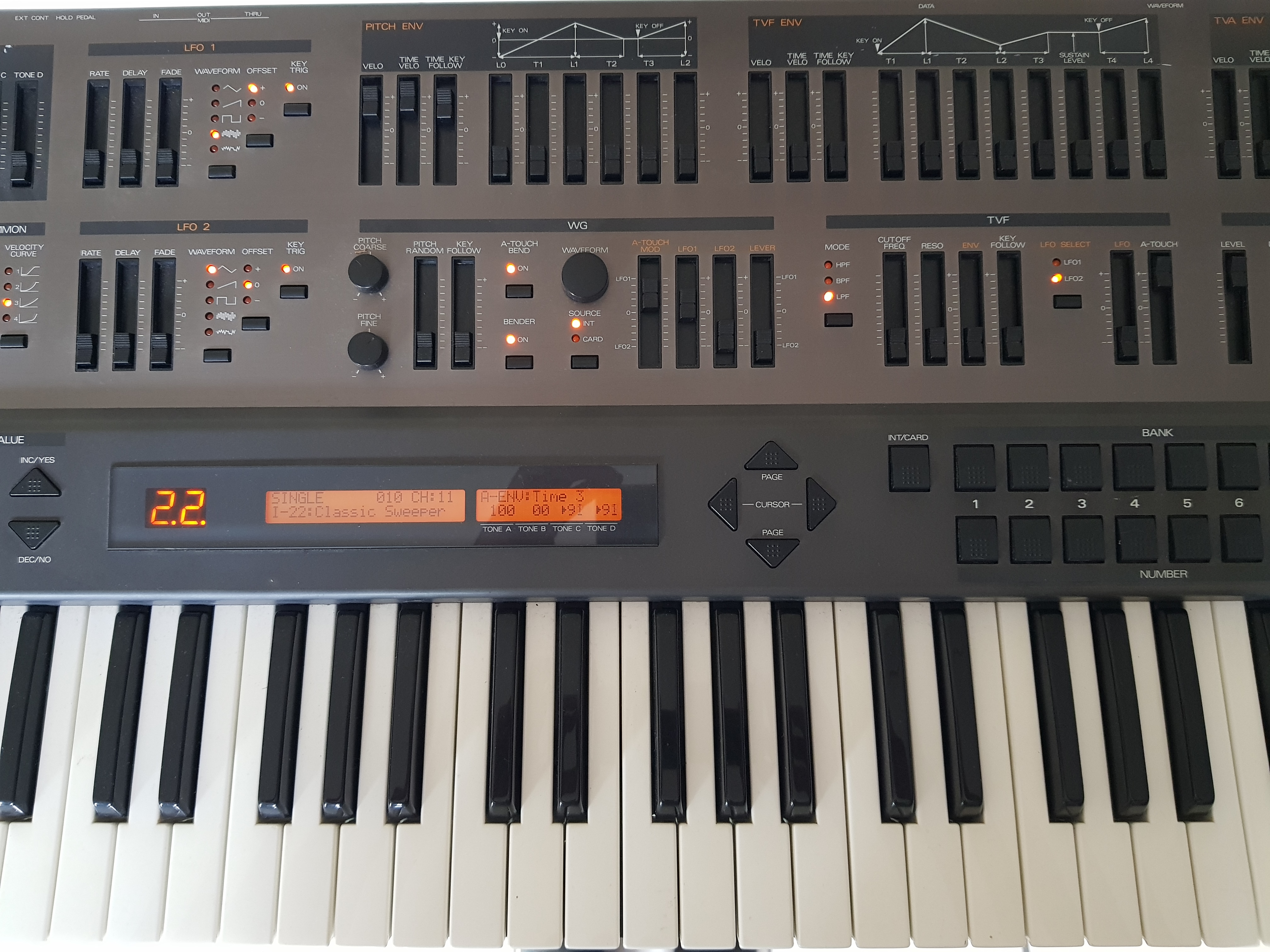 lots of buttons, enough things to do sons.machine exceptional, very beautiful line, stunning effects (for age), synthetic motor filter very basic but aging typé.machine mal.fragilité contacts and keyboard cursors.