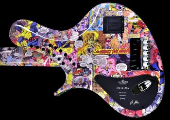 The new Jens Ritter X-Men will see the light of day during the Winter NAMM 2014. The design of this 5-string bass guitar features scanned cover pages of Marvel’s comics. In order to achieve that, Ritter used a new technique that involves printing on a super thin foil that is then covered with a hand-polished, high-gloss lacquer.