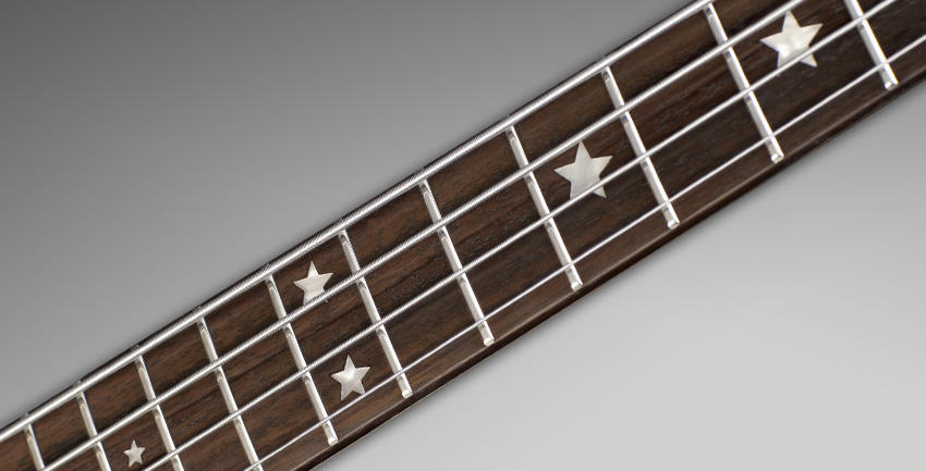 - Rosewood fretboard with 24 nickelsilver frets, star inlays and 20" radius