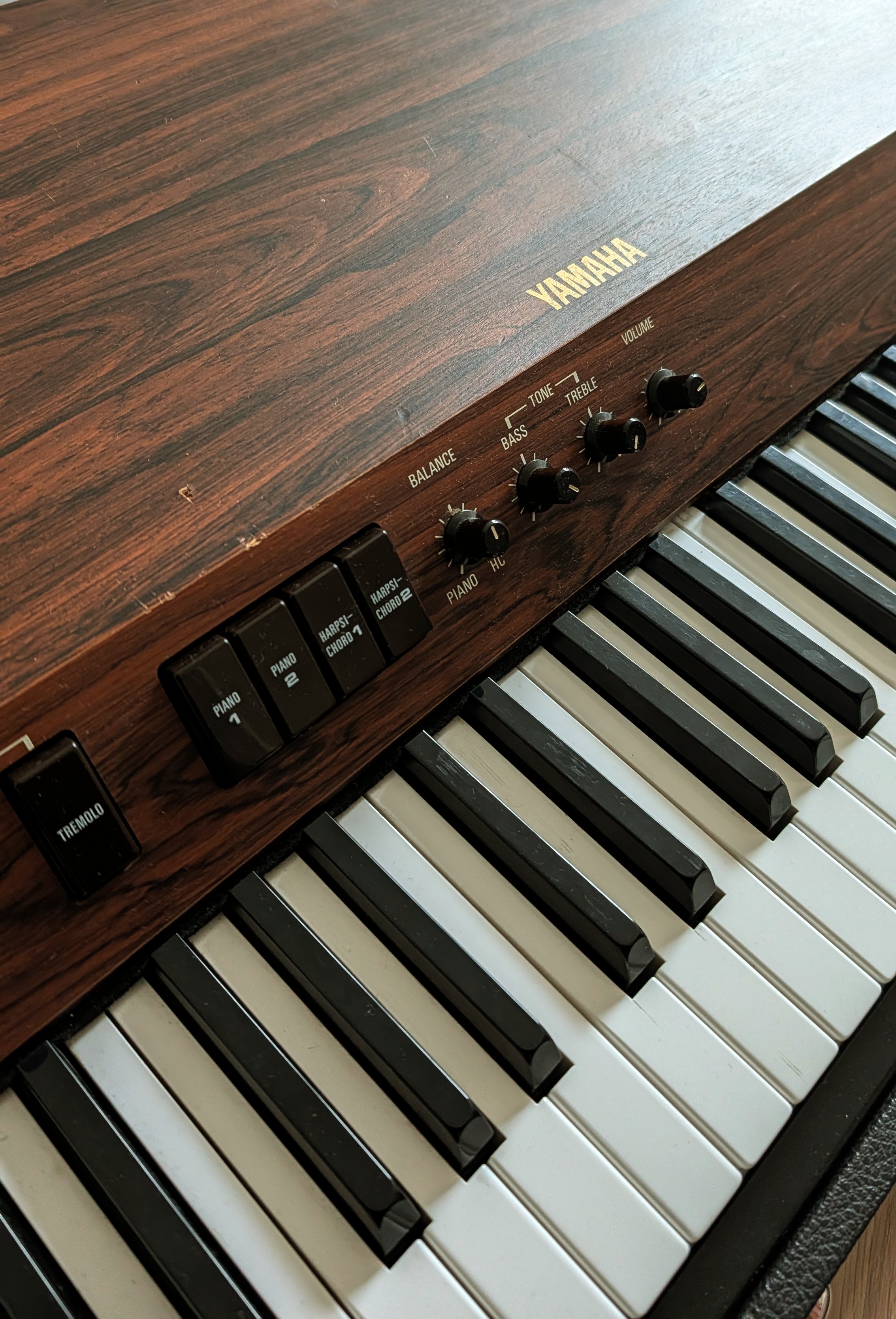 My first electric piano when I started gigging in 1981/82. Had I the money I would have bought a CP80. The CP20 and larger twin CP30 were polyphonic, touch sensitive, and had a sustain pedal, but the similarity to either a piano or Rhodes ended there. Very cheesy electronic sounding, was sort of convincing in a band with several loud guitarists and the audience had been drinking heavily. Distinctive sound but not in a good way; any synth VST could easily reproduce, not that you'd want to. Not even a good tine piano, semi-convincing harpsichord. (Think "Right place wrong time" by Dr. John.) Replaced with a Helpinstill Roadmaster 88 Mk. II which, happily, was the acoustic sound I looked for, albeit with its own myriad issues; sold the CP20 in 1984 and though I've regretted selling many instruments over the years, this is not one of them.