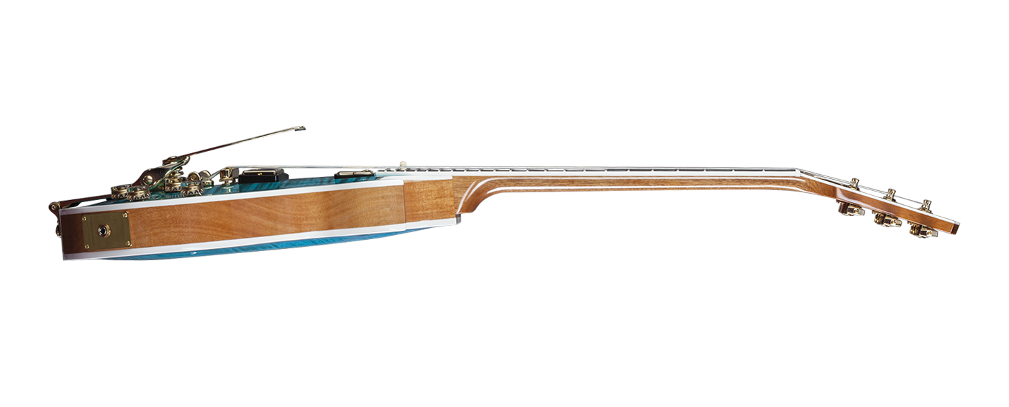 - Flame maple chambered body with Florentine cutaway design