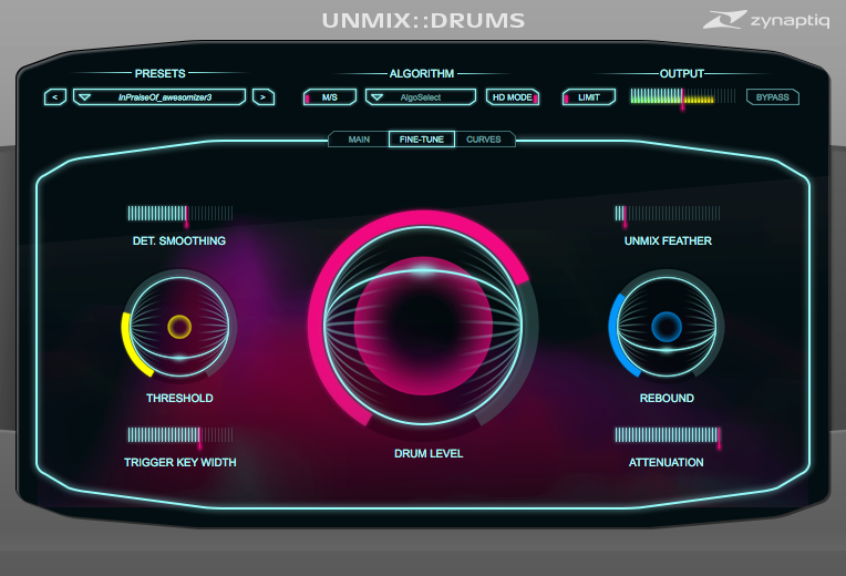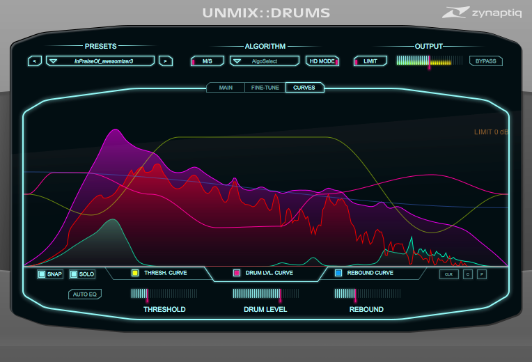 The plug-in uses the source signal separation technology and offers a control ranging from +18 dB of boost to virtually complete removal, as well as an output limiter. The key parameters are frequency dependent and the GUI includes a Zynaptiq analyzer.