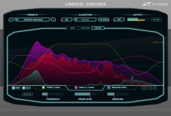 With the new Unmix::Drums, Zynaptiq gives you the necessary tools to remix or de-mix drums in an already mixed audio file in real time. You can use it to balance drums or restore the dynamics in a master, remove or extract drums from a track, for DJs who do mashups, for instance. The plug-in supports mono, stereo and Mid/Side processing with samples rates from 44.1 to 192 kHz.