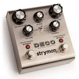 Deco offers two types of effects: tape saturation and doubletracker. Their respective knobs gives you the ability to vary the sound so you can go from a subtle compressed saturation to a transparent overdrive on one side and start from a flange, then a chorus, slapback and tape echo with the other effect. Both effects can be bypassed individually thanks to two footswitches, note that the Doubletacker footswitch can activate an auto-flange effect when pressed longer.