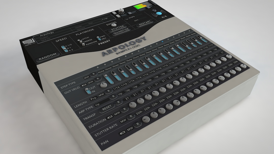 Arpology is compatible with Kontakt 5.3 and the free Kontakt Player 5.3. The library will be available on May 27th but you can pre-order it for the special price of $299.99 instead of $399.99. You’ll find more info, including videos of the main features, at www.samplelogic.com.