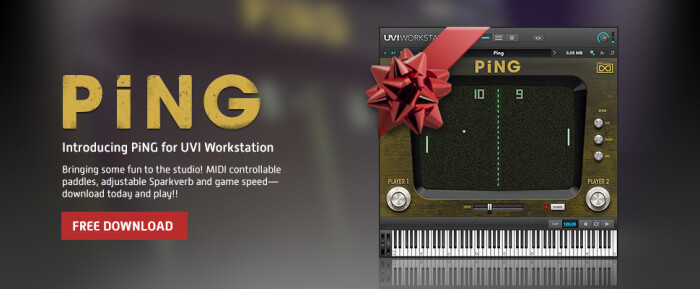 Need to take a break from your current session? Just fire up an instance of UVI Workstation 2 and load PiNG. This fully-featured, “pong-style” video game is complete with vintage graphics and sound effects, along with gameplay parameters that can be entirely controlled with the MIDI controllers already in your studio! For more information, visit: www.uvi.net.
