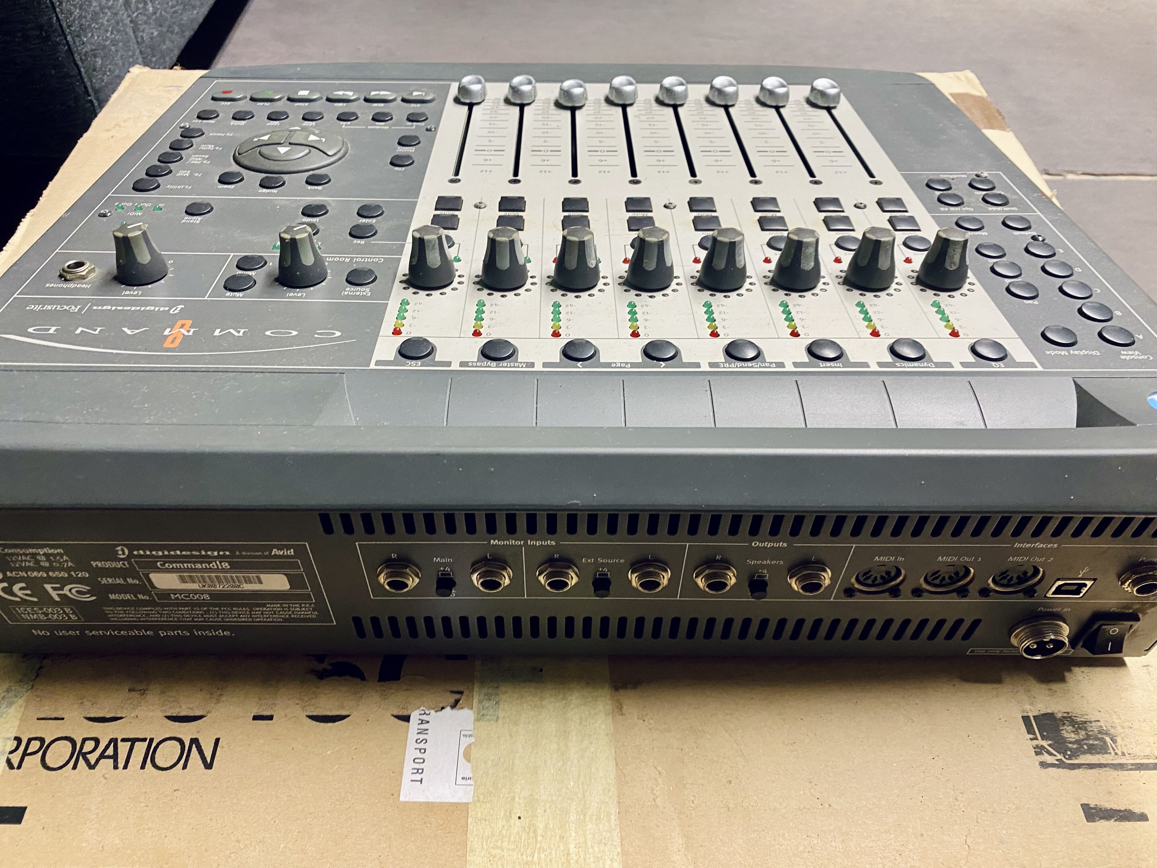 I've been using the Digidesign Command 8 MIDI based control surface for about two years. The Command 8 is somewhat similar to the control surface on the Digi 002, except that this lacks the mic preamps that the 002 has. Since it is made by Digidesign, it is made for use with Pro Tools systems, and I'm not sure if it will even work with any other type of sequencer. I would really only recommend use of this with either Pro Tools HD or LE systems because most of their controls are commands for Pro Tools. The Command 8 covers control over pretty much everything you can think of in Pro Tools, a lot of which I haven't even used because I find it is easier to control it within the box. However, having the real faders, knobs, and solo and mute buttons comes in really handy while I am mixing and I know a lot of engineers like to have the feel of real faders while they mix as well. Its transport buttons are laid out smartly and everything is easy to access. The control over monitoring, either with headphones or through studio monitors, is well designed as well. I would compare the Command 8 to other similar products like the Mackie HUI and Universal Control, the M-Audio Project I/O and other Digidesign products such as the Pro Control and the control surface on the Digi 002 and 003. All of these products perform a similar task, and I would recommend those interested to try them all and see what will work best for them. This being said, the Digidesign Command 8 is as good as any to perform the basic functions and can get pretty in depth as well. For those who have rack based interfaces for controlling Pro Tools, the Command 8 is a great addition.