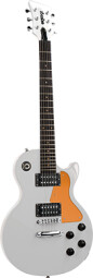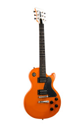 The Orange Guitar is a Les Paul-like single cutaway solid-body electric model with a nato body, a bolt-on maple neck, rosewood fingerboard with 22 frets, 2 medium-output humbucking pickups with two volume and tone knobs and a 3-way switch, Tune-O-Matic bridge and Stop Bar tailpiece. The nut width is 1.69” and the scale length of 24.75”.