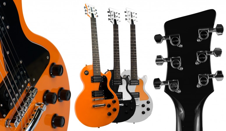 The strings on this guitar have a .010 – .046 tension and the guitar features chrome hardware. You can choose between three finishes: Orange with black pickguard, Black with white pickguard and White with orange pickguard. This is a limited edition.