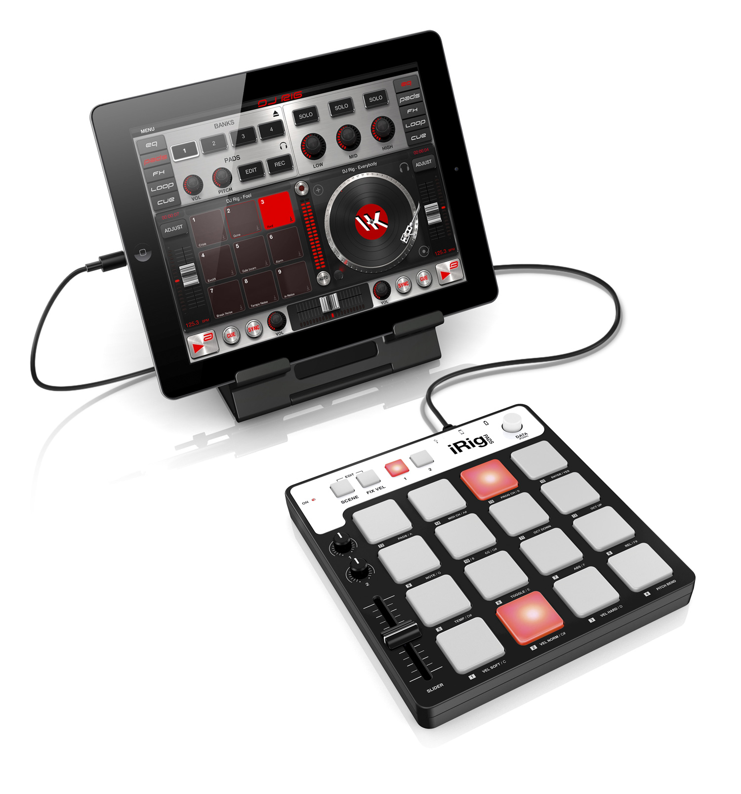 The iRig Pads is an ultra compact MIDI pad controller that can be used with iPhone, iPod Touch and iPad, and also on your Mac and PC.