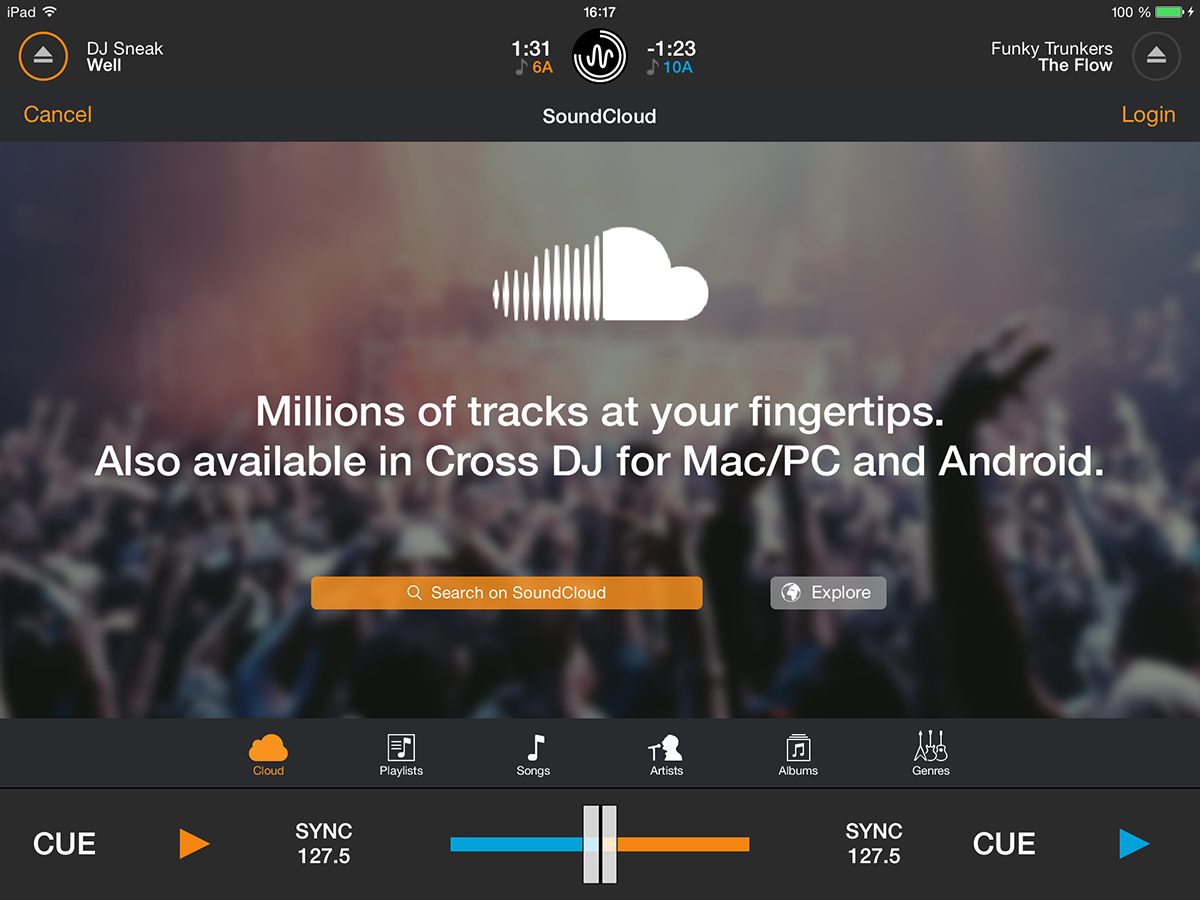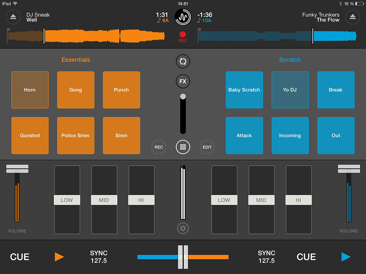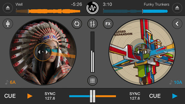- Hardware-inspired design with separate menus that display via swipe on each deck, a larger and more accurate pitch slider and a permanently displaying mixer