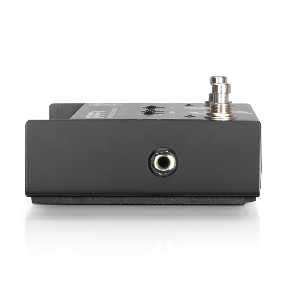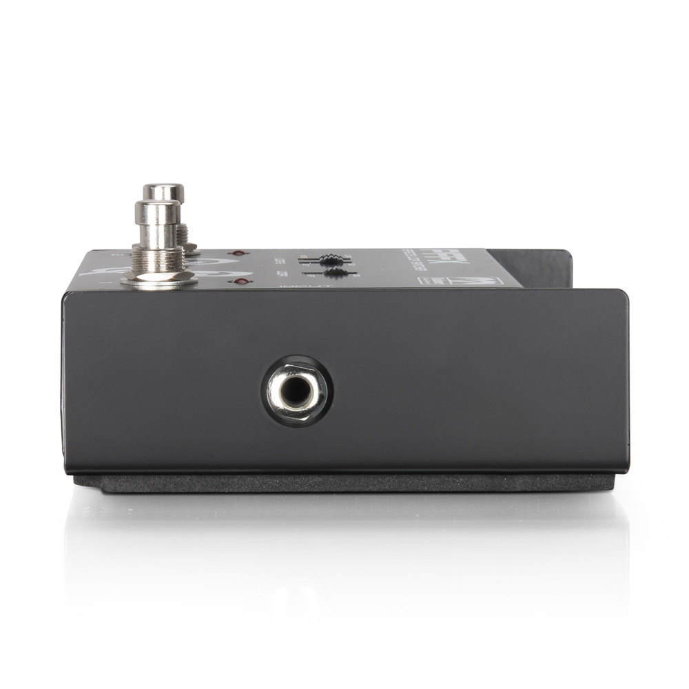 A slider allows for choosing between contact closure and electronic impulse or open/closed position of the relay. Another switch gives you the ability to setup one of the two footswitches as Master if you want to activate both channels simultaneously.