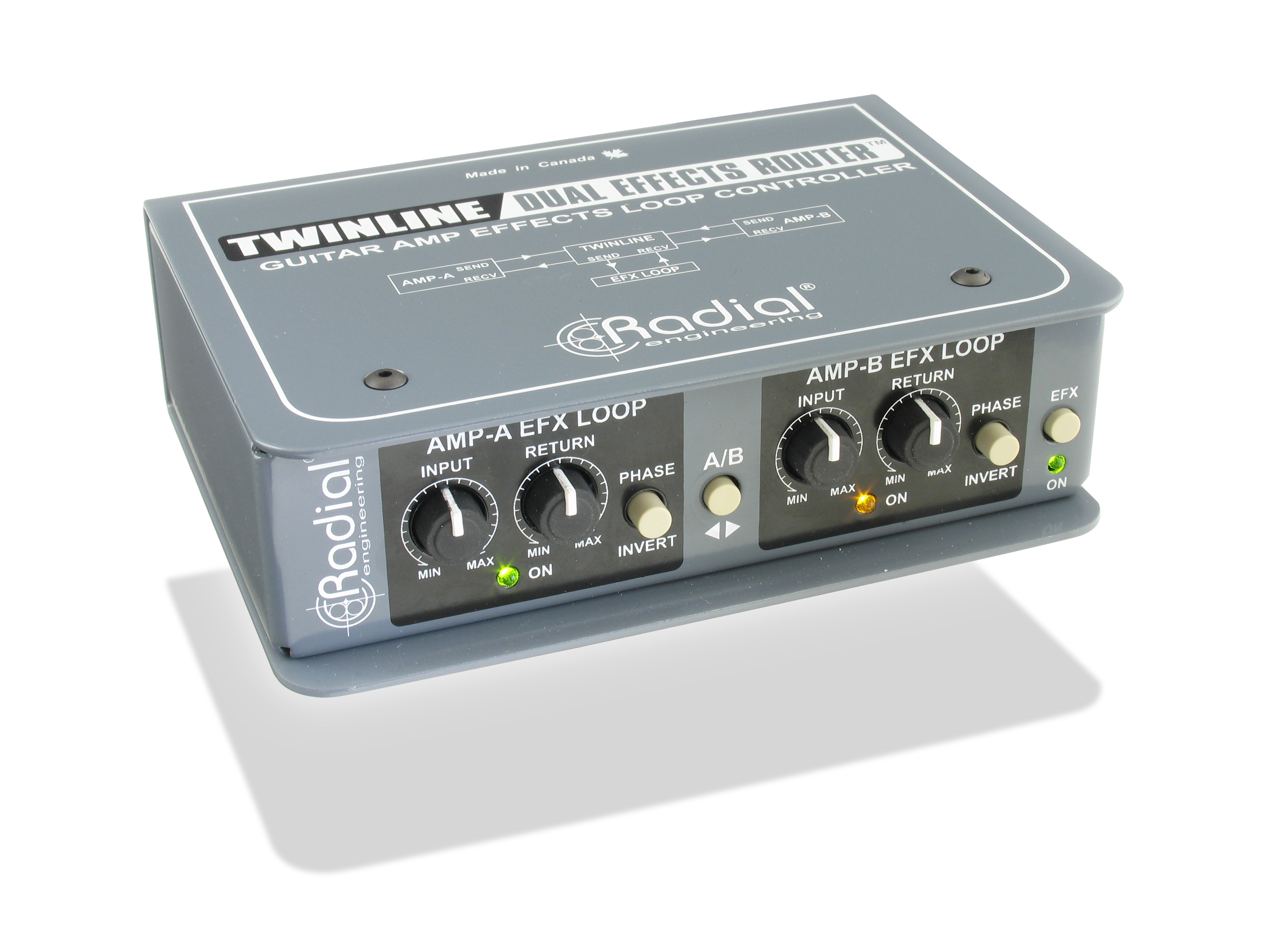 The Radial Twinline lets you select between the active amplifier head’s effects-loop and automatically switches the effects so that they follow in tandem.