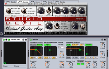 In this final audio example, I employed all of the above suggestions: I maximized my gain stages; I worked on the sound totally dry until I had it where I wanted it by switching out the stock cabinet, turning the tone knobs, and adding compression. Only then did I add a hint of stereo digital delay to place the sound in a space, and then bounce it to disk with the resolution at its highest. With proper attention to these tweaks, a modeled amp tone can easily equal a recorded version of the real thing.