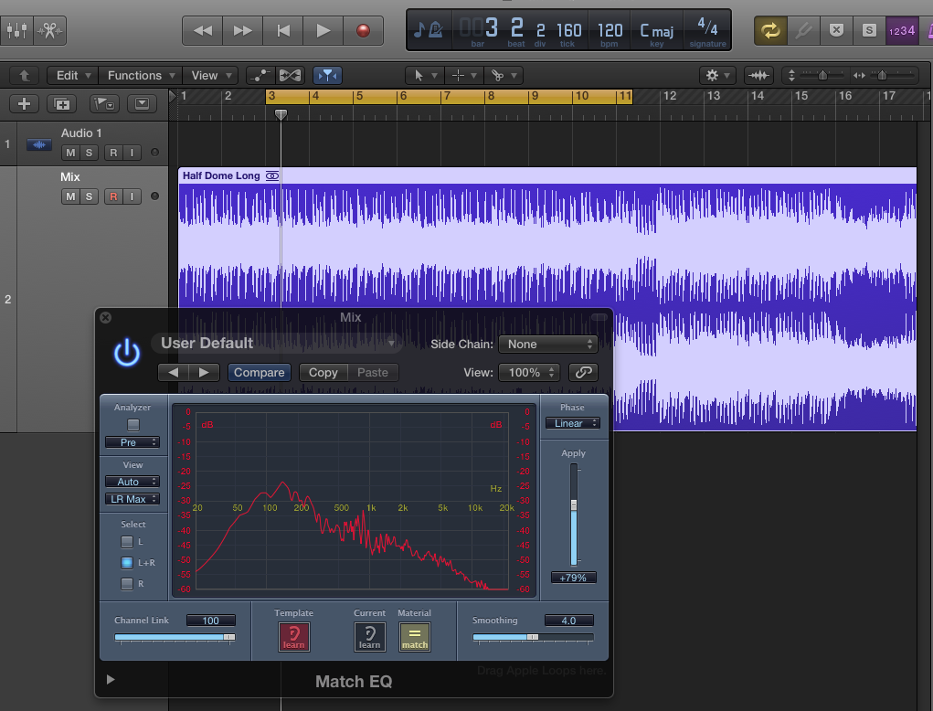 Like other match EQs, Logic Pro X's version can learn the EQ profile of an entire mix and copy it onto another