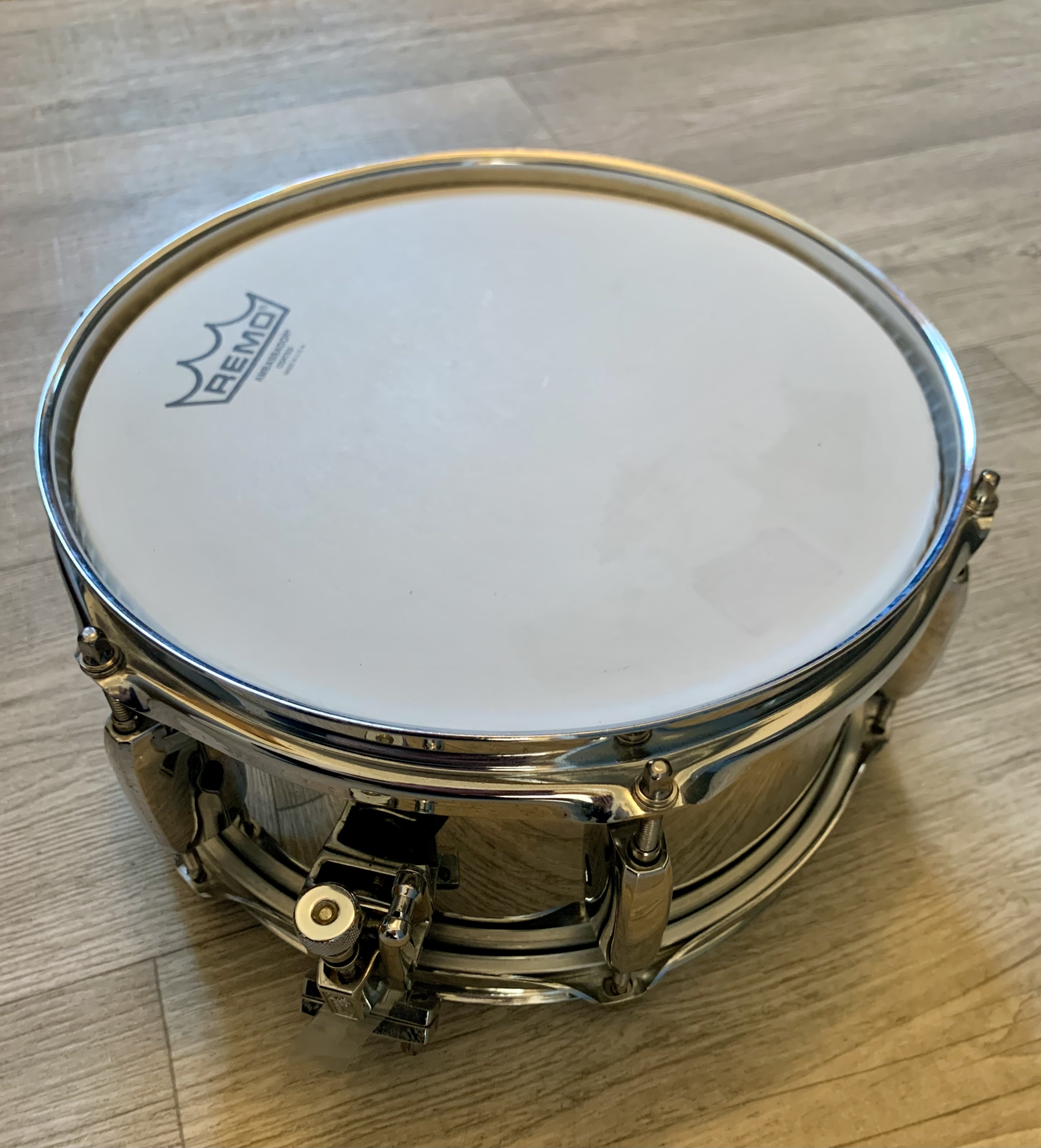 I’ll start out with the good things about this drum. When I bought this, the first thing I noticed was its looks. Not to sound like a 5 year old, but I was attracted to its “shinyness”. Now it may seem immature, but you have to take into consideration that drumming is an art, and your gear has to look good! Another thing I liked about this snare is its versatility. As a side snare, it can contrast against the sounds of your main snare very well. Whether you want a loud crack or more of a soft “tick”, this snare can provide. The next thing I really liked about this drum was the dimensions of it all. Yeah, 10 inches is pretty small when it comes to a snare drum, but at least it didn’t fall under the ratio of a 14 inch drum; being that it’s still 5 inches deep. This gives you the projection and the volume that you would want out of a side snare.