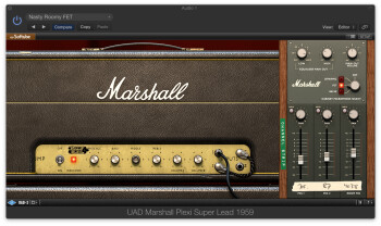 The Marshall Plexi Super Lead 1959 is another Softube-designed plug-in. It was developed with the cooperation of Marshall, and the actual Plexi that was modeled came from Marshall’s own private collection. For the cabinet, Softube modeled a Marshall 4×12 with Celestion GH-12H30's.