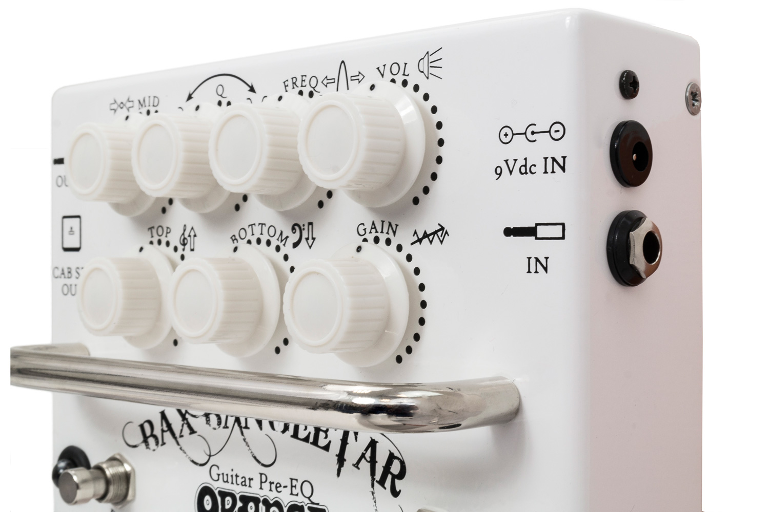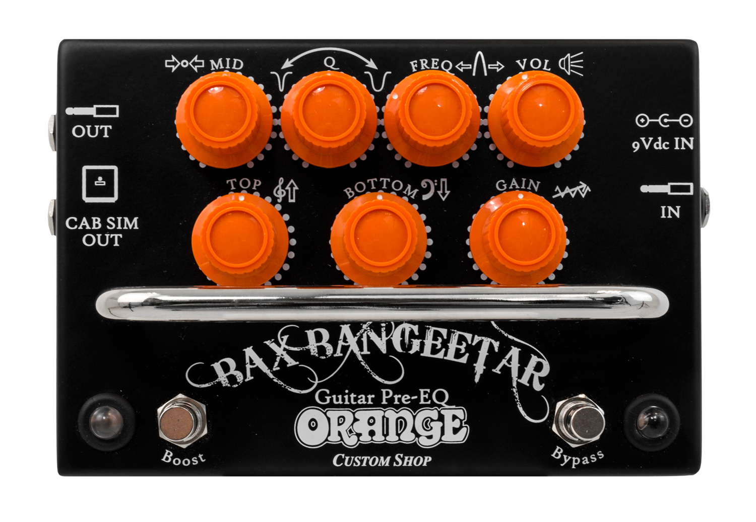 The pedal includes a true bypass, an Orange-designed buffered bypass, and an internal charge pump doubles the voltage so that you can get an 18V operation from a 9V battery or 9–12 V adapter.