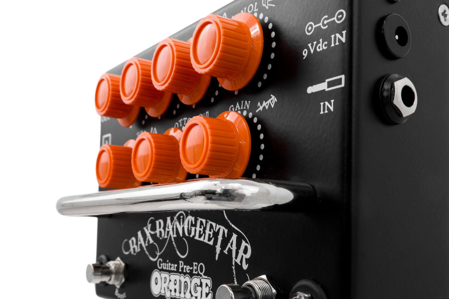 The Orange Amps Bax Bangeetar is a guitar preamp pedal with which you can directly record the sound of your instrument through direct or speaker-emulated outputs.