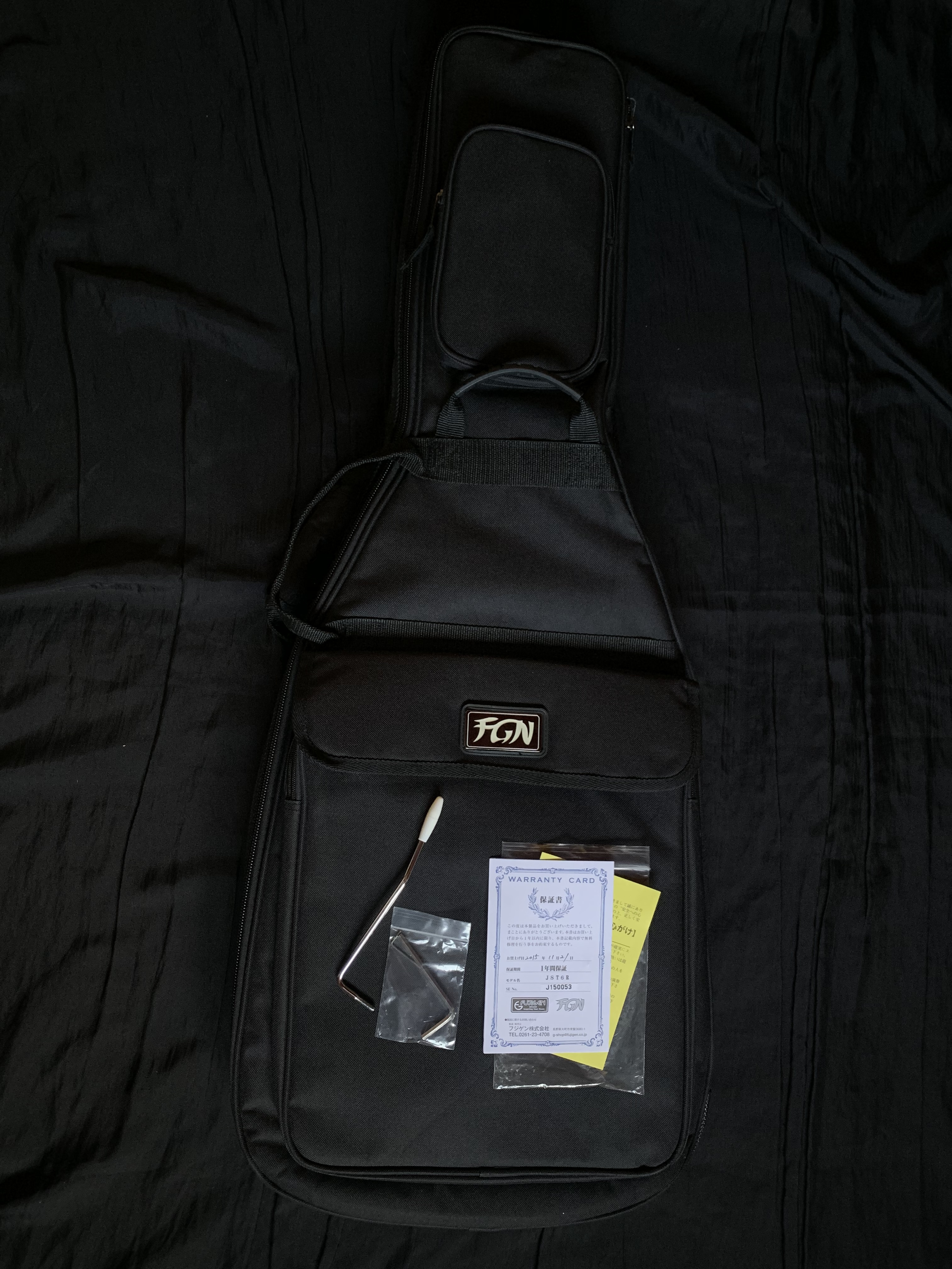 The guitar is sold with a high-quality gig bag (its shockproof and also made by Fujigen).