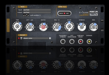 The compressor ships with a plug-in that allows for remote MIDI control of the unit from a computer. The GUI reproduces the rack but in 3U formats, and offers the same controls as the ones on the device. You’ll even find the same 4 mini toggle switches that allow for “numbering” the rack (default number is 1). It is then easier to sync the plug-in to the corresponding device number, for it is possible to chain up to 16 units with a single MIDI cable and drive/recall/automate them via a MIDI/USB interface (16 instances of the plug-in can be run on the computer). Audio Touch adds that other compatible devices will be available in the future.