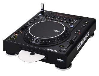 The new Reloop RMP-4 can play CDs and audio files in MP3, WAV, AAC and AIFF formats from the built-in player and USB port, as well as control any MIDI DJ software. You can even link two RMP-4 and share a USB source, control a software, sync the beat and more.