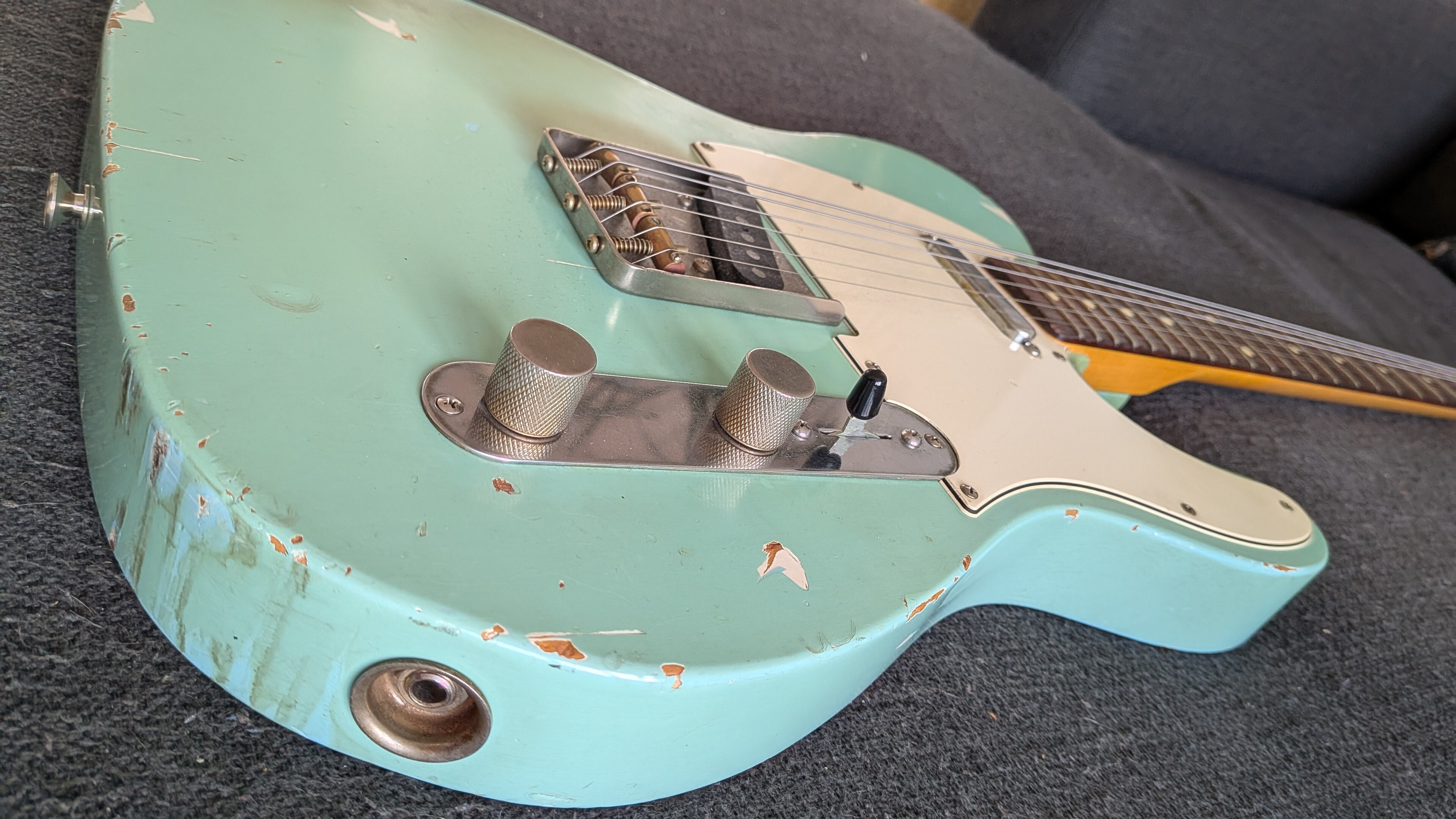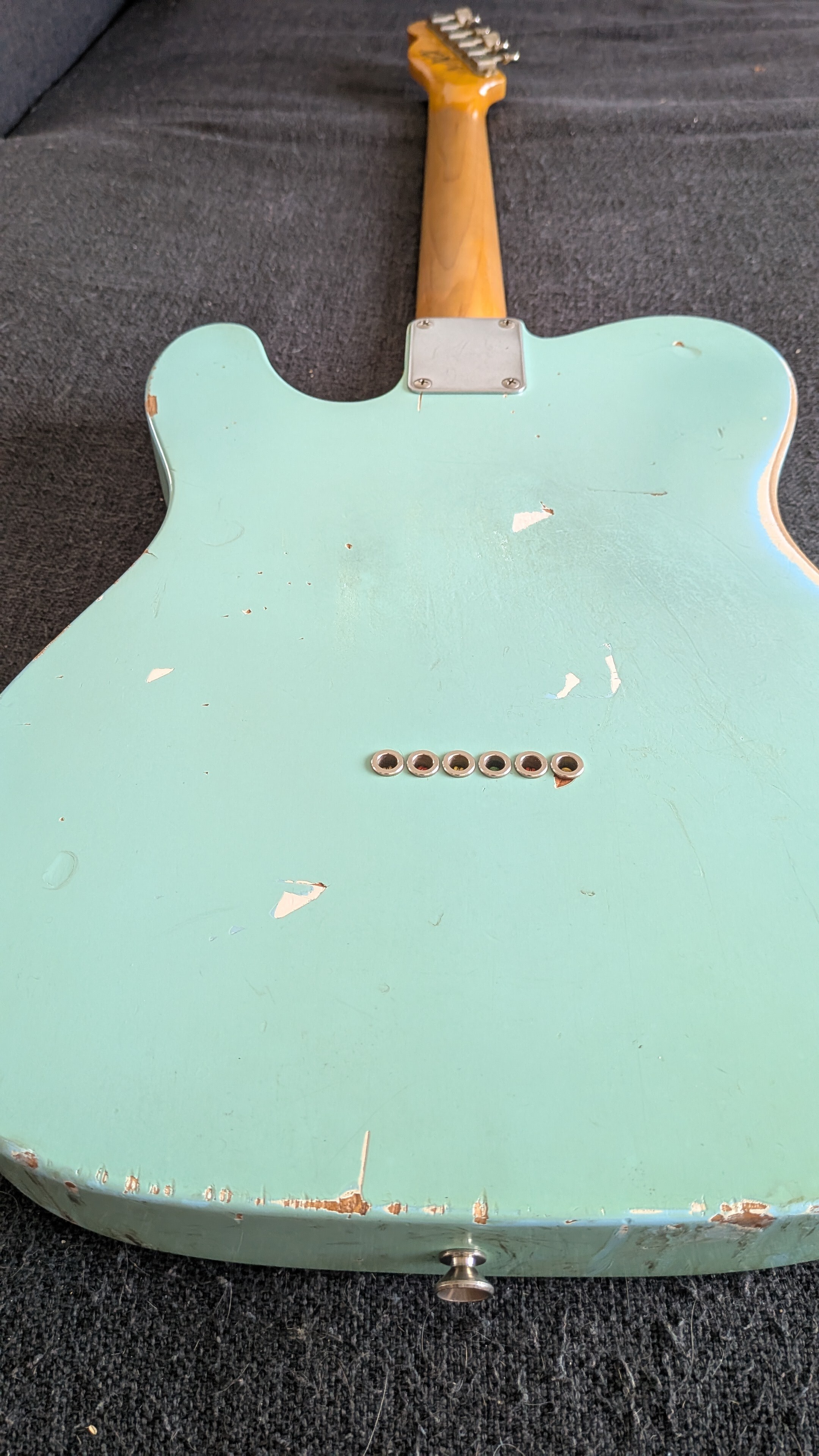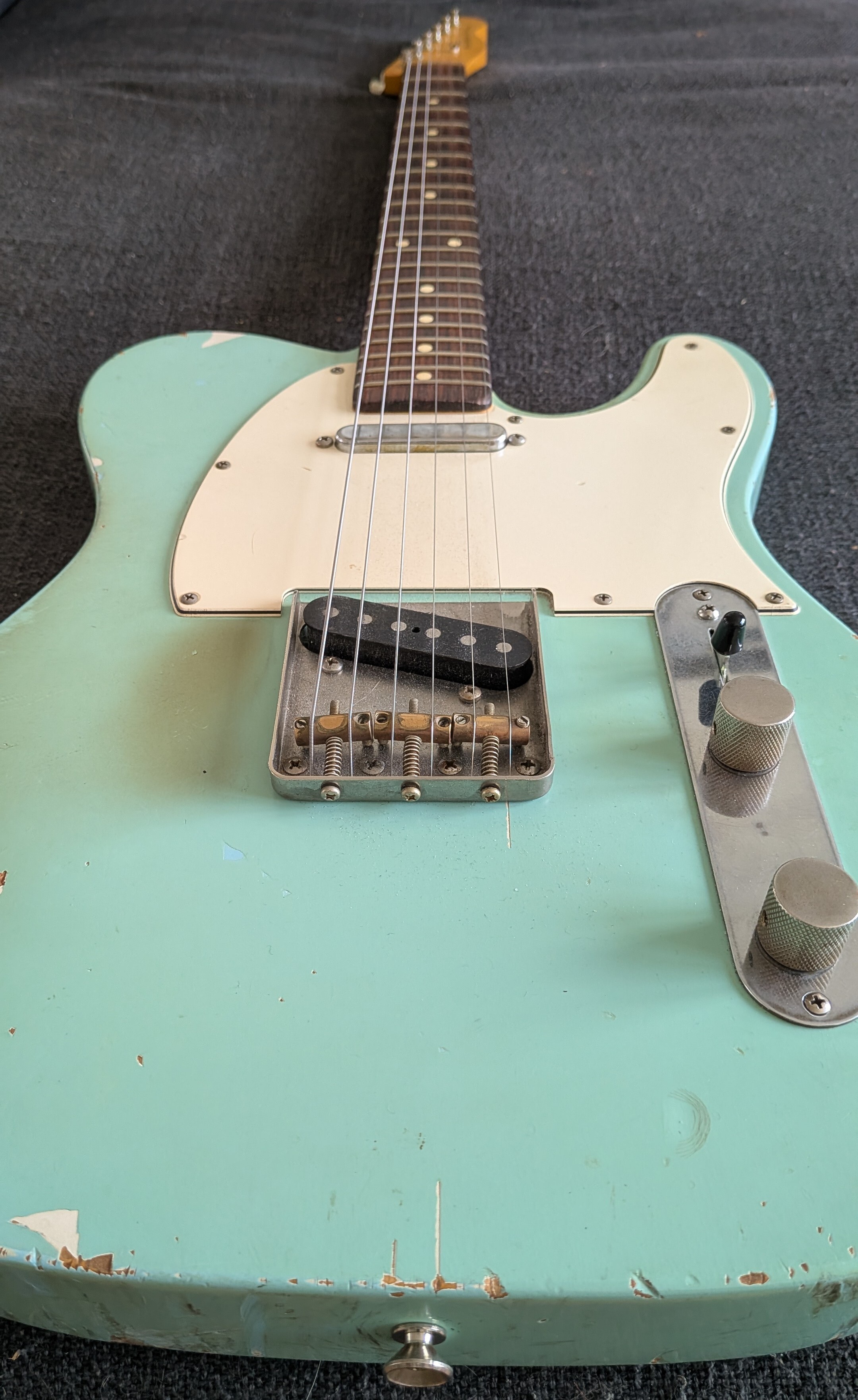 Telecaster relic built by the US nash guitars, mine is pretty reliquée, telecaster standard configuration, three bridges, Seymour Duncan pickups very soft and fine polish frets thin, plate or plastic cahoutchouc very soft vintage-DIY