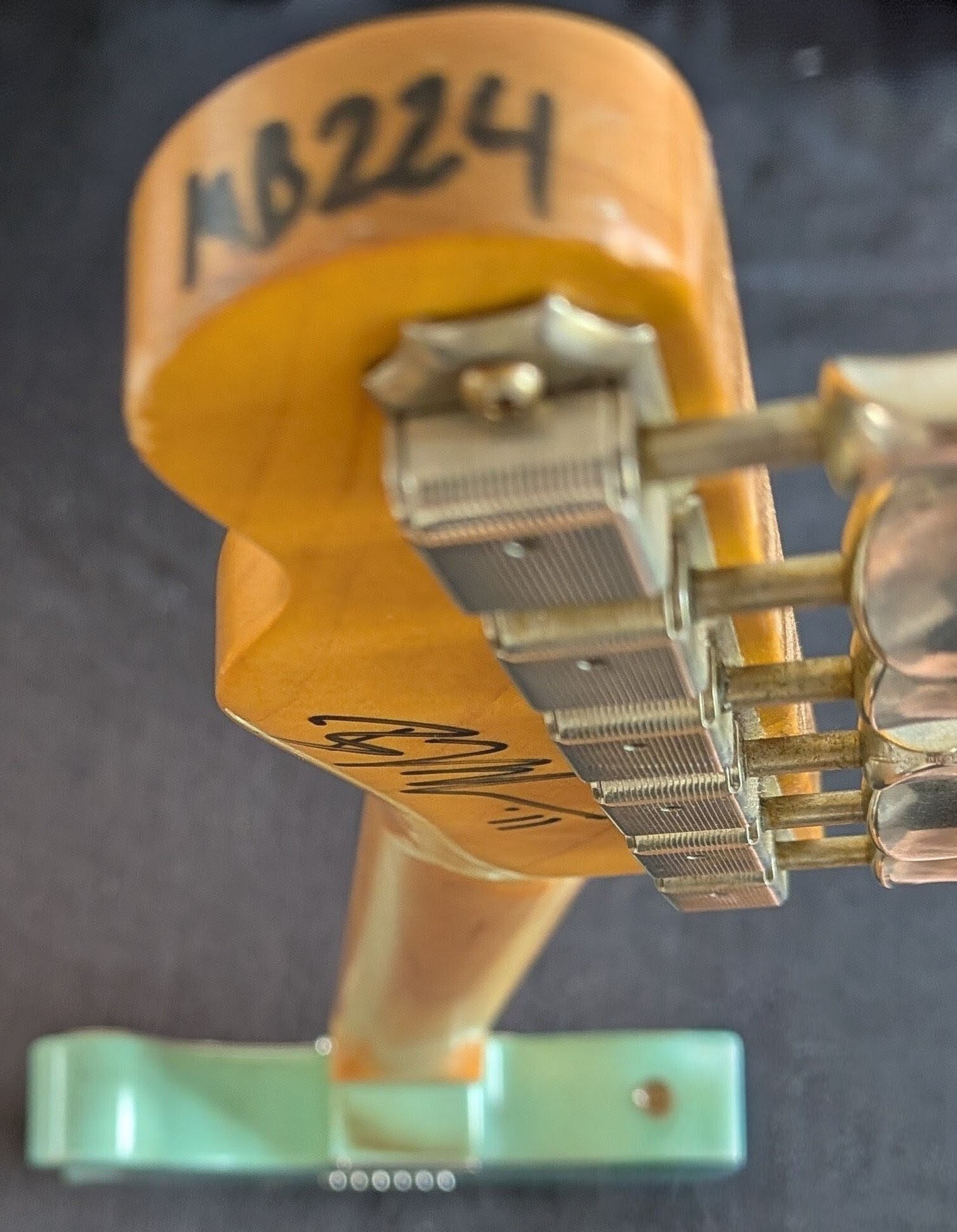Lollar pickups, Gotoh mechanical I think, three bridge saddles.