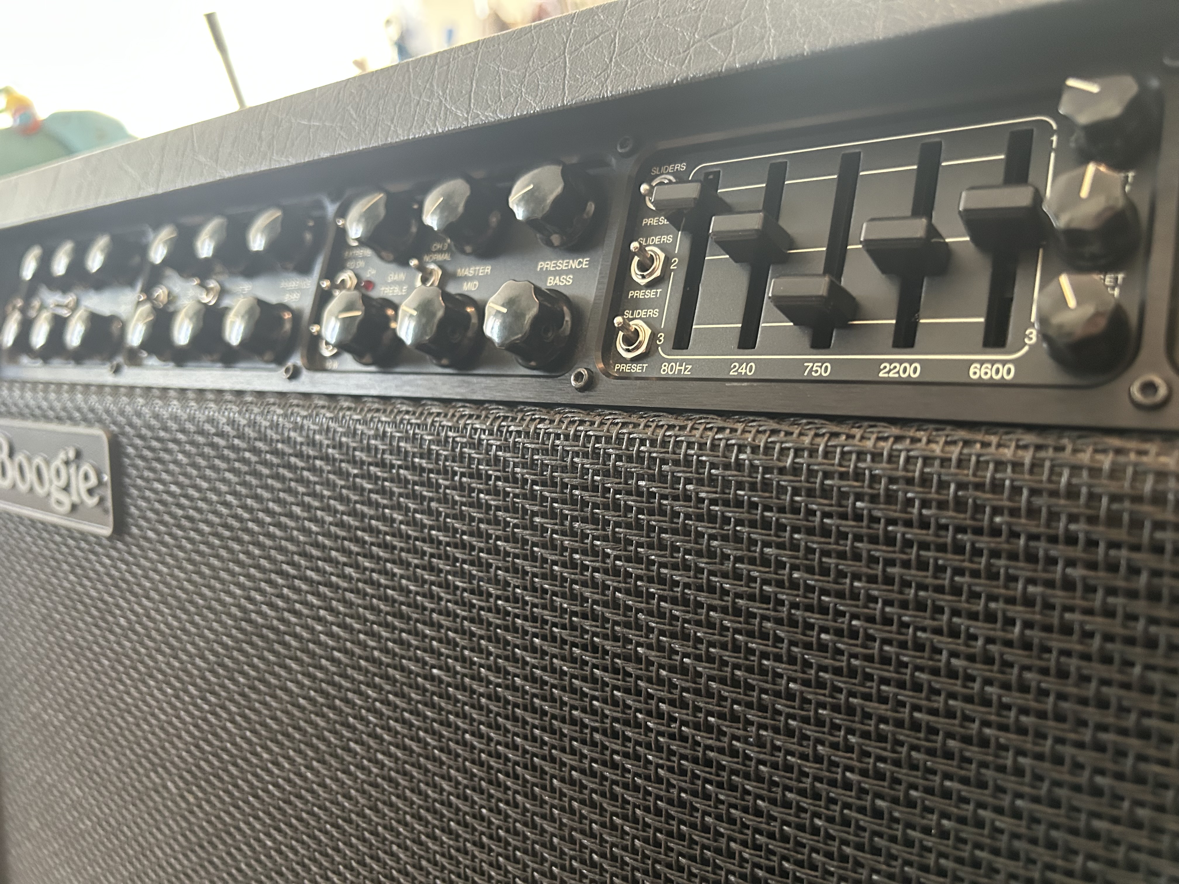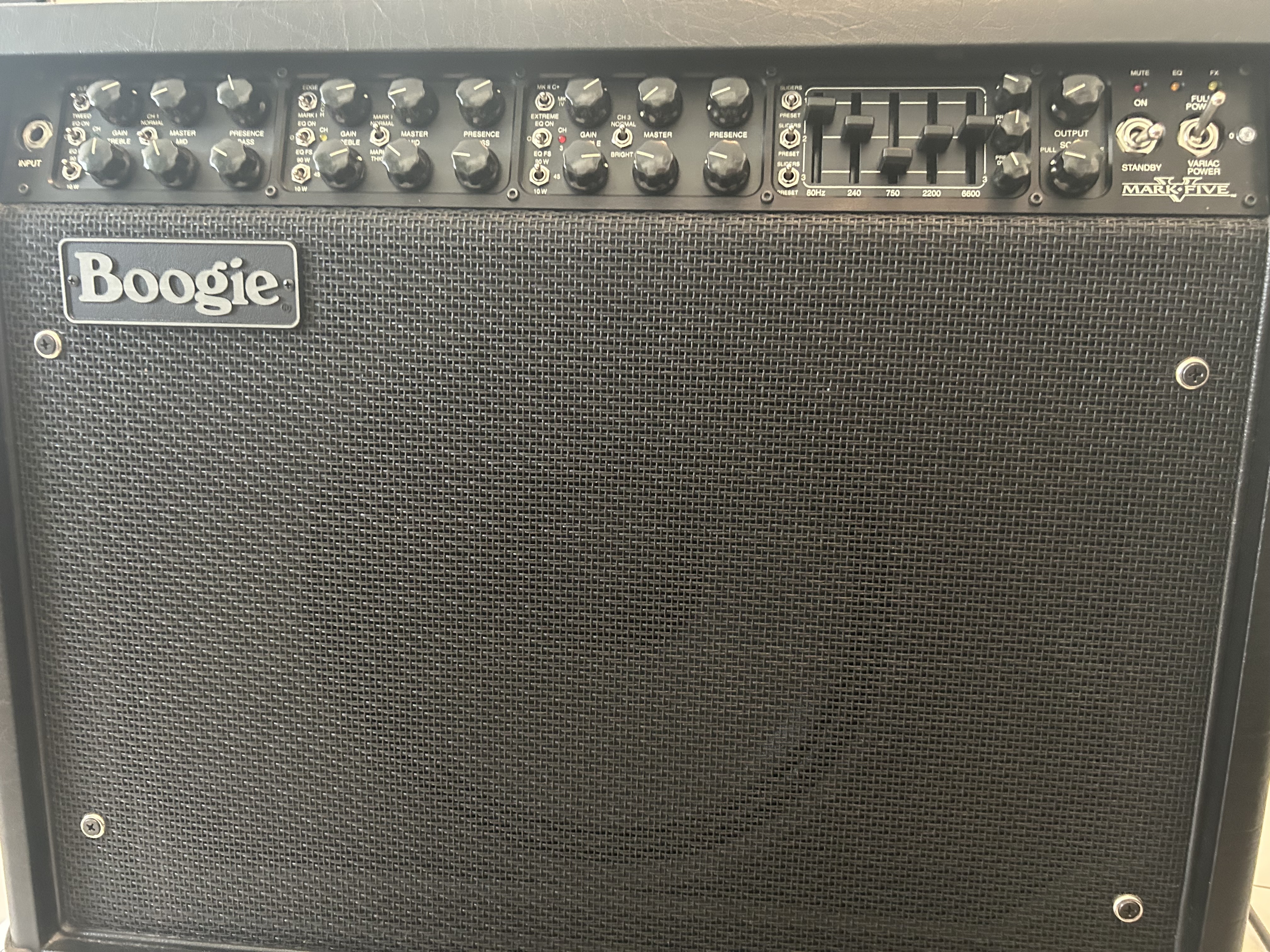 I found the MkV to be challenging to dial in at times. While it is not difficult to find a pleasant sound using generic settings, the amp took a great deal of adjusting to get it just right. The included graphic EQ is essential for coaxing higher gain tones from the amp. The 1x12 is plenty loud but lacks the low end emphasis that you may desire. I favored running the combo through an external 4x12 cab.
