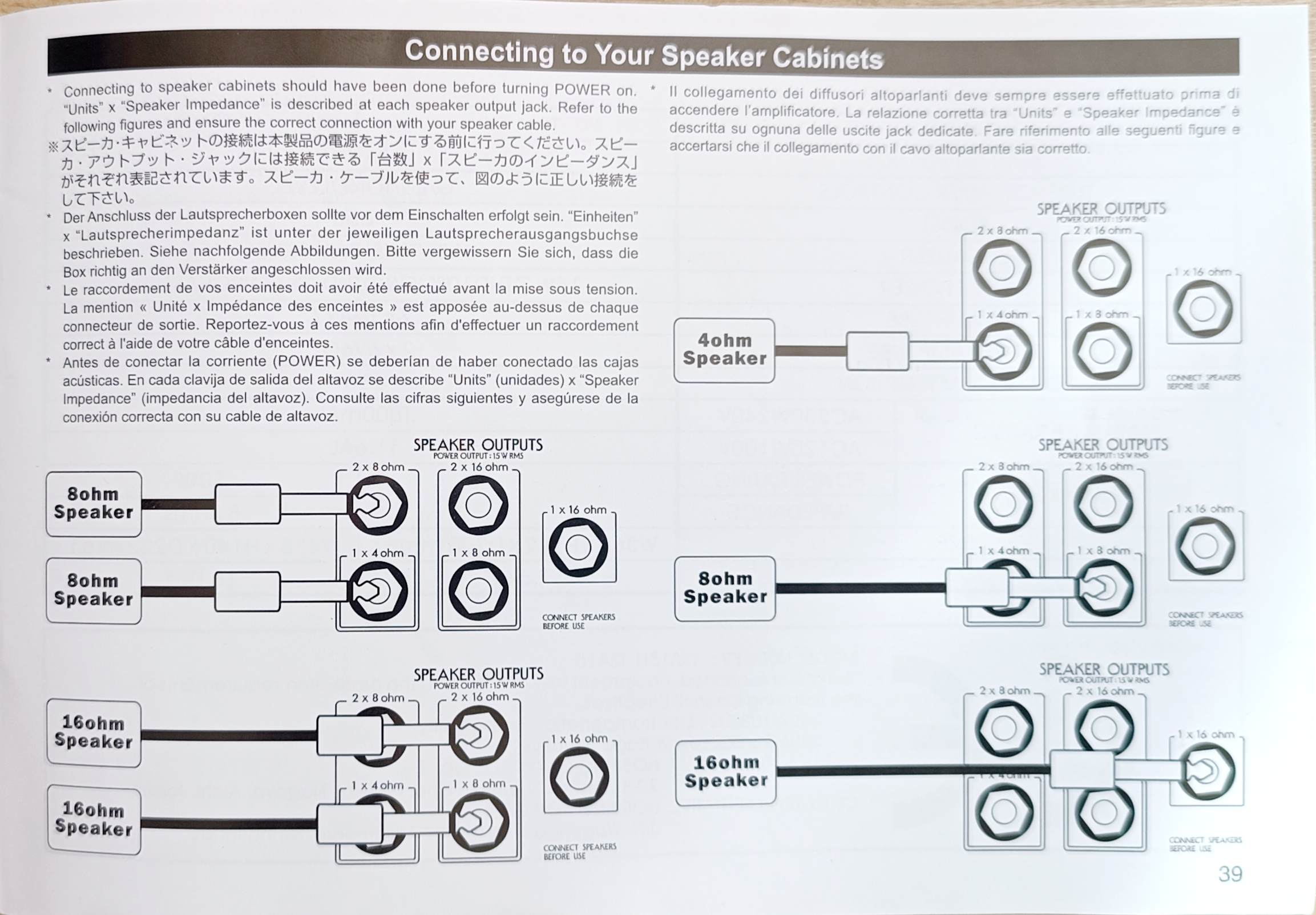 - Output hp 4, 8, 16 ohms doubled