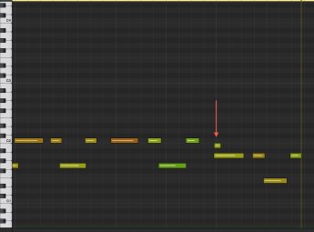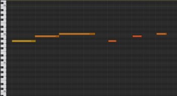 Even without key or velocity switches, you have some control over articulation by adjusting the length and velocity of notes. Notes that overlap slightly have a more legato attack, whereas notes that don’t have a more stacatto attack. Here’s an example where the first three notes overlap, and the second three don’t. You’ll hear the difference.