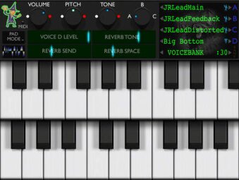 Jordantron features multiple controls to vary the sounds, including a Half Speed mode, a stereo reverb, 12 programable chord pads and you can setup Jordan-like divebombs on a full octave. 32 Voicebanks are also available to store the settings (instruments, reverb and ABC Blending). Note that you can also control both Tron engines with MIDI keyboards.