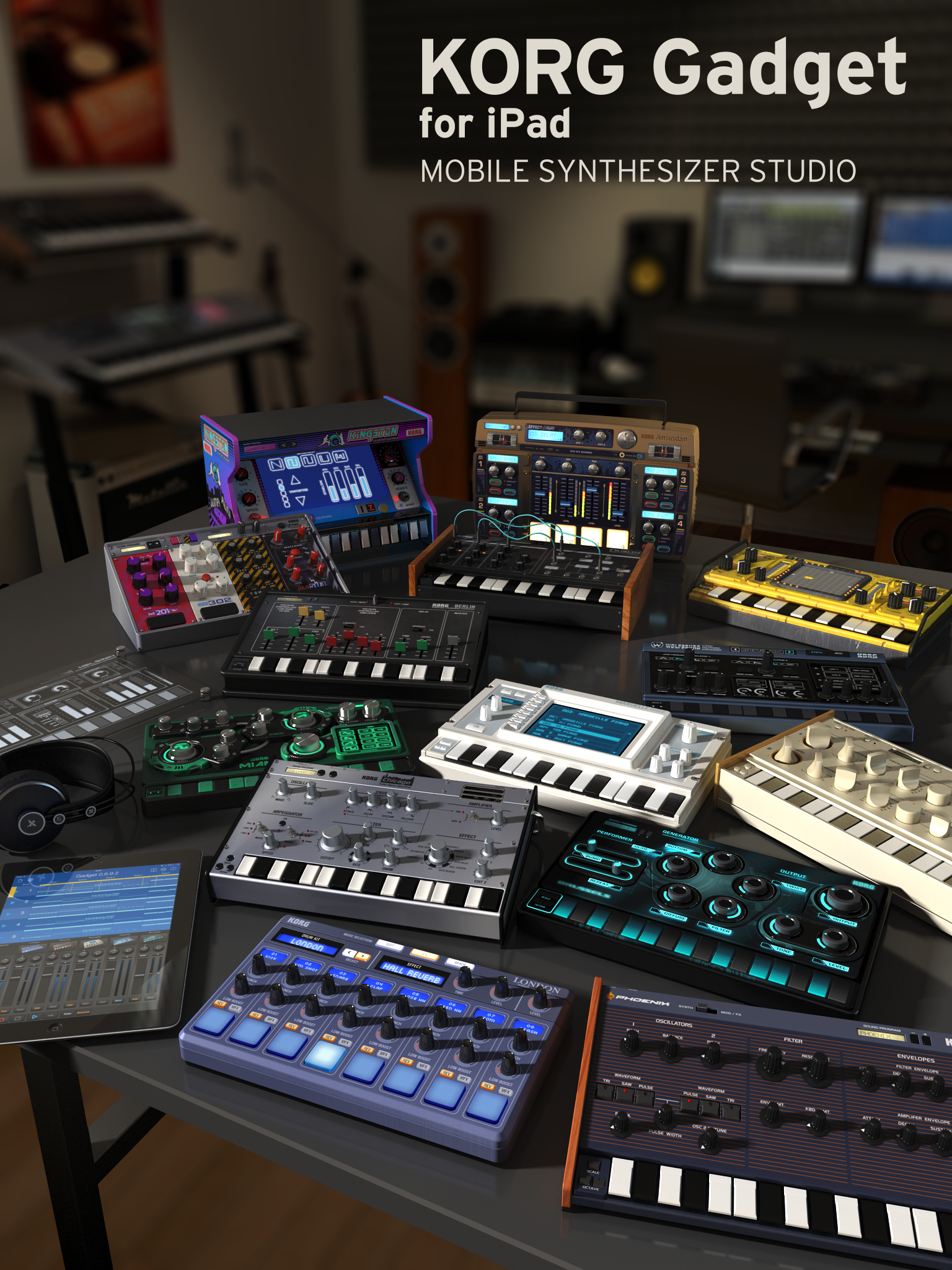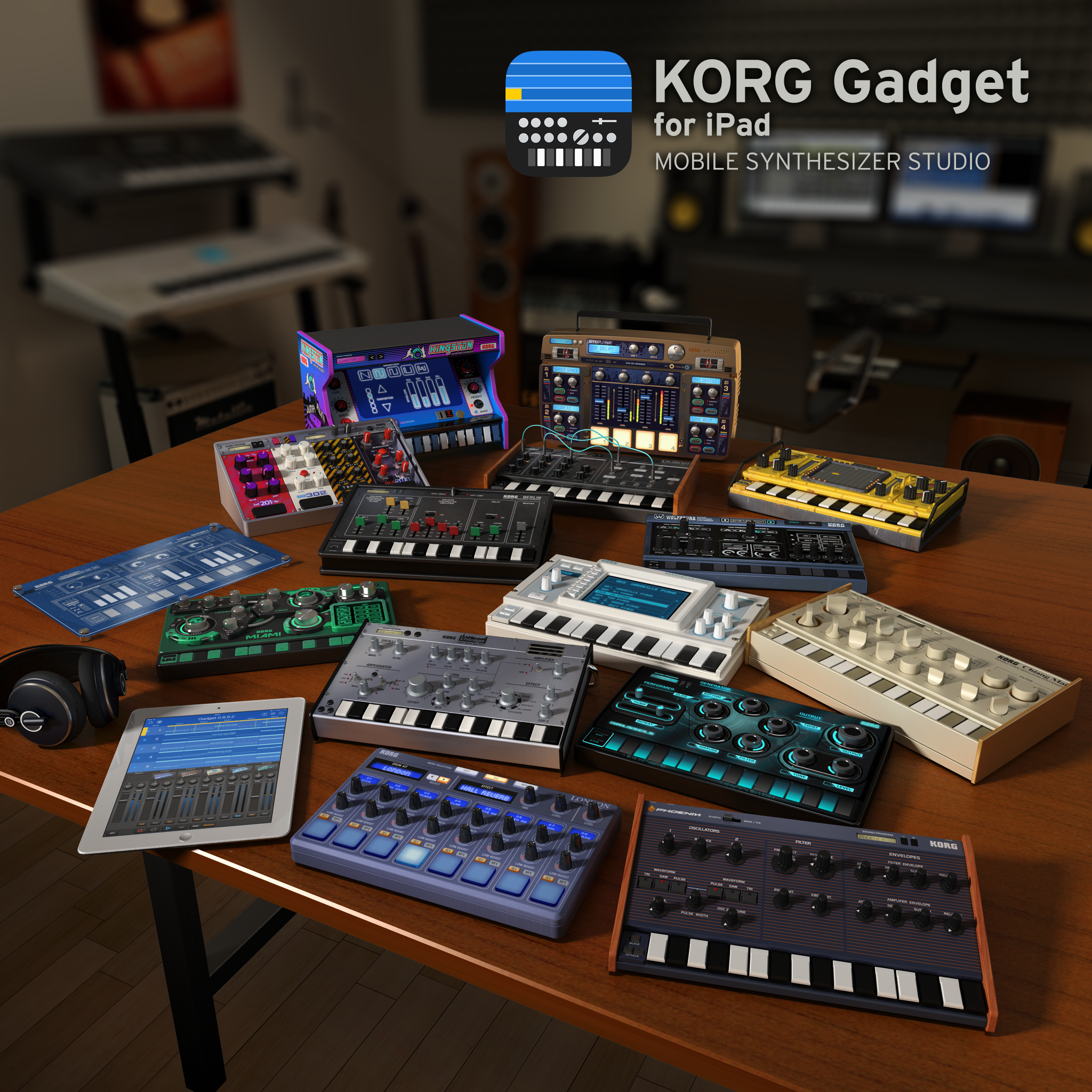 Korg adds to your iPad a collection of 15 virtual synths and drum boxes called Gadget, an app that debuts at the NAMM Show 2014.