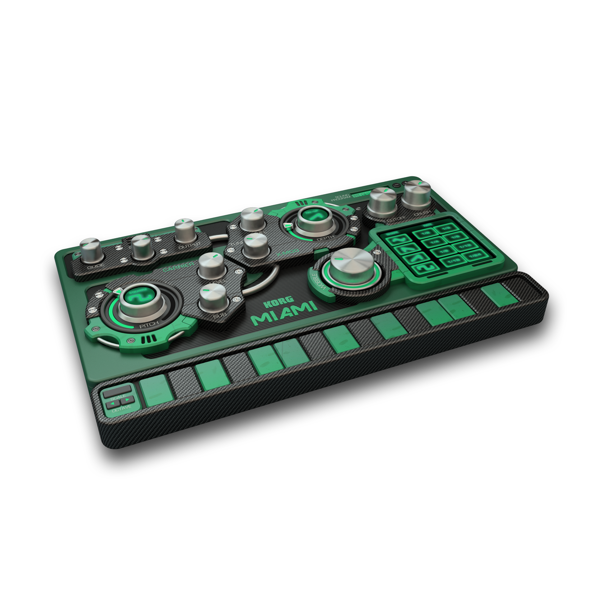 - Miami: monophonic wobble synth with X-MOD oscillator that generates complex overtones and modulations, and a Crush sound for adding noise