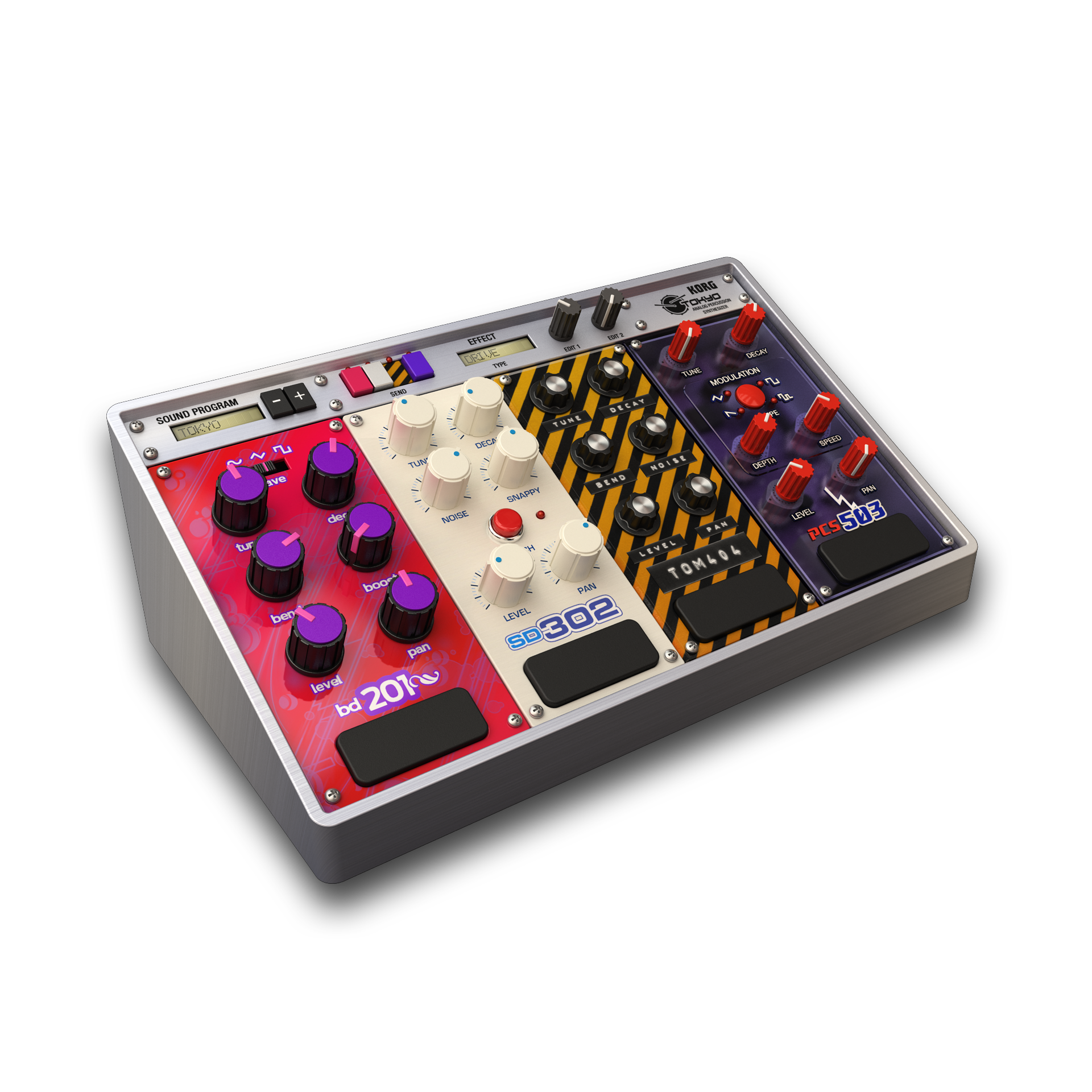 - Tokyo: VA percussive synth with 4 kick, snare, tom and percussion modules