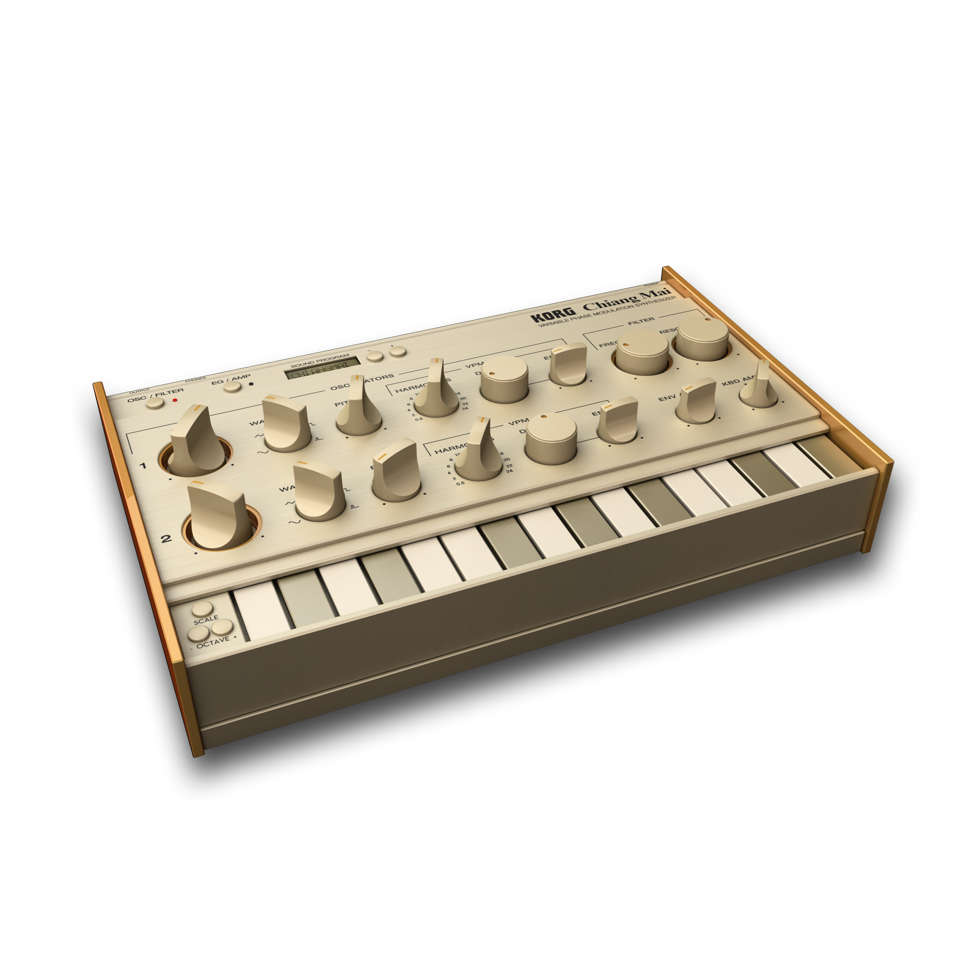 - Chiang Mai: polyphonic VPM (variable phase modulation) synth to create metallic sounds