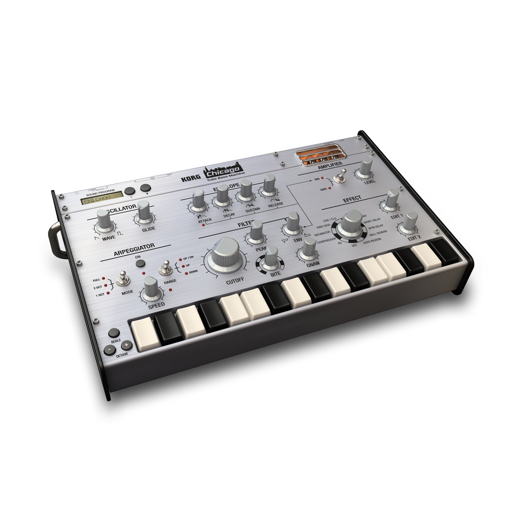- Chicago: Tube Bass Machine for acid house and other electronic styles, with a Bite filter that ranges from classic bass synth to aggressive distorted tones, an arpeggiator and a multi-effect