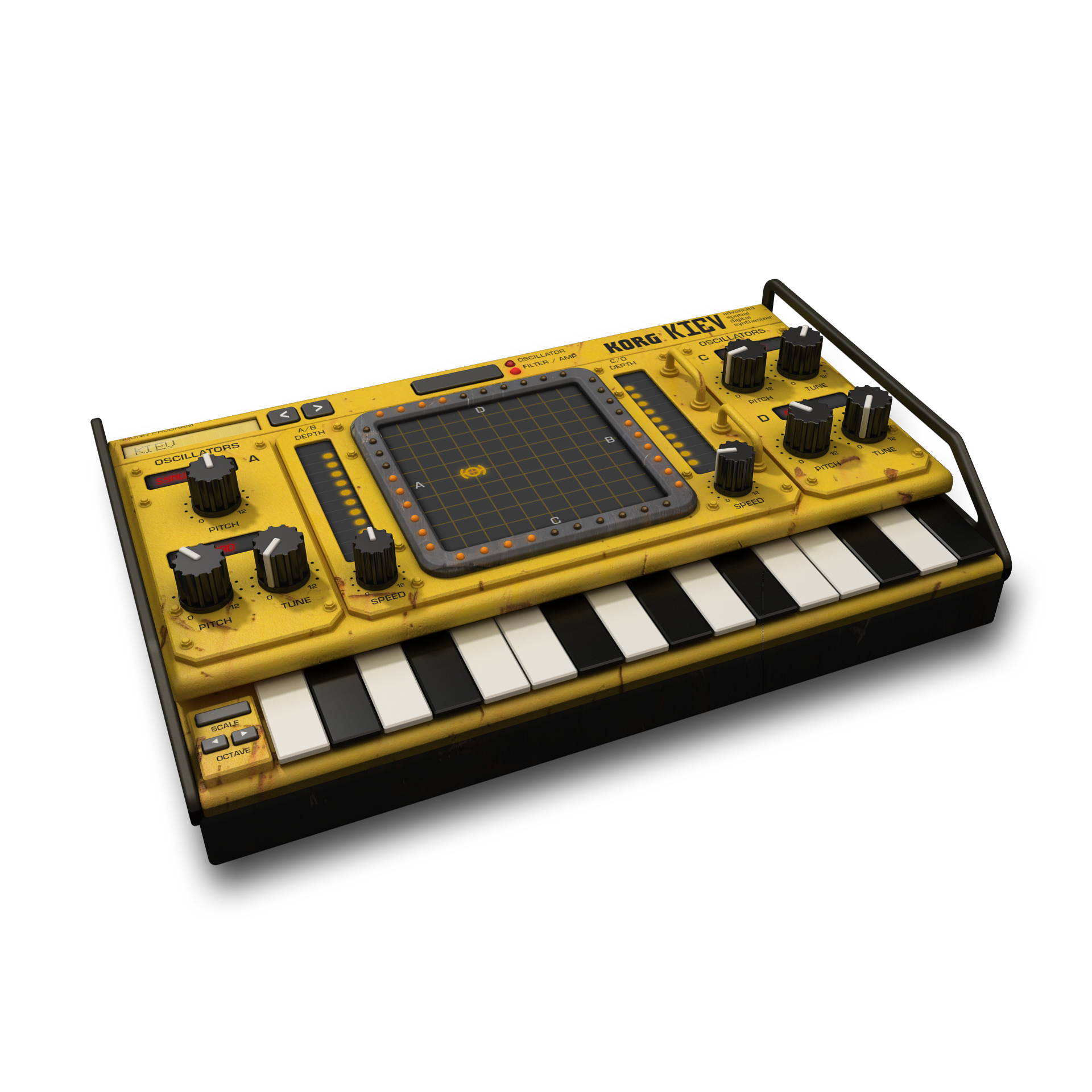 - Kiev: Advanced “Spatial” digital synth with vector synthesis, 4 oscillators and a mystery Warp sound that can be controlled with the touch pad