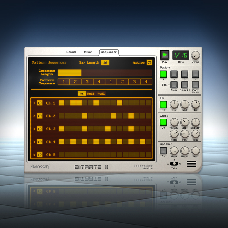 BitRate II also includes a 5-track mixer and a master effect section with analog modeled EQ, bus compressor and speaker simulation.