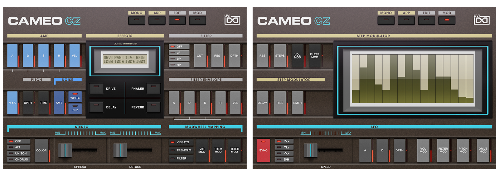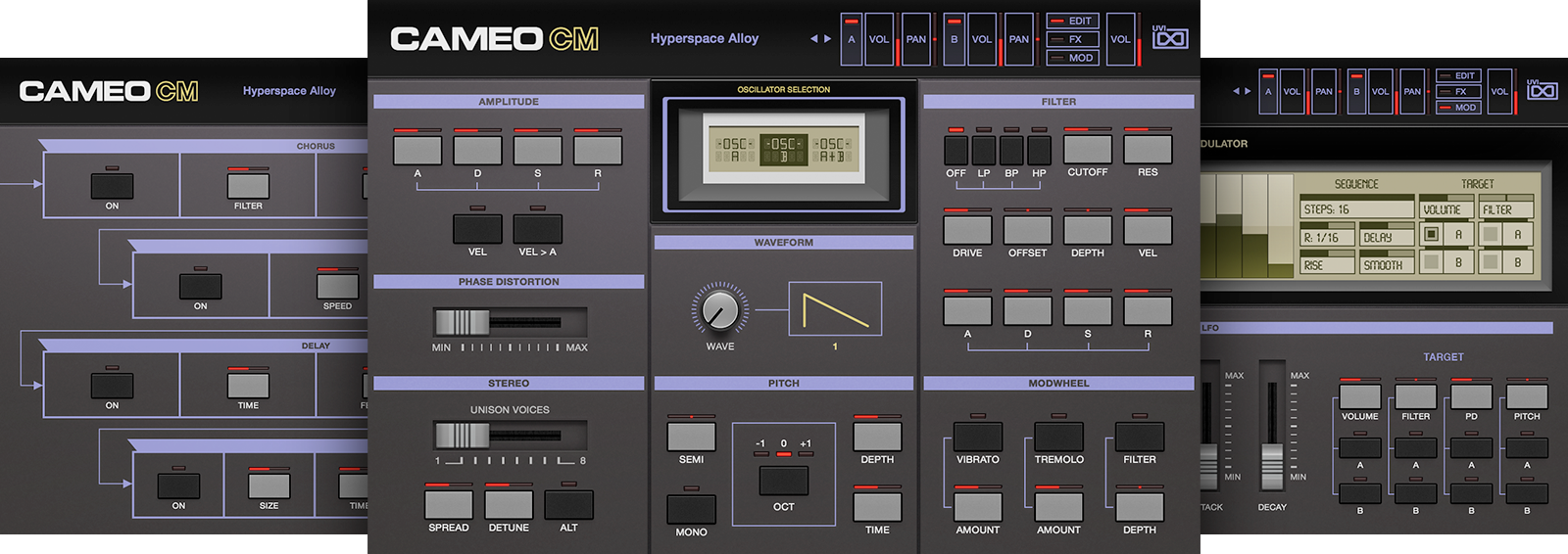 Loosely inspired by several Casio classic synths from the 1980s including the CZ1, CZ101, CZ1000, CZ2300S, CZ3000 and CZ5000 models, the three models included in the Cameo Phase Distortion Suite each offer a different approach, unique sonic character and inspiration.