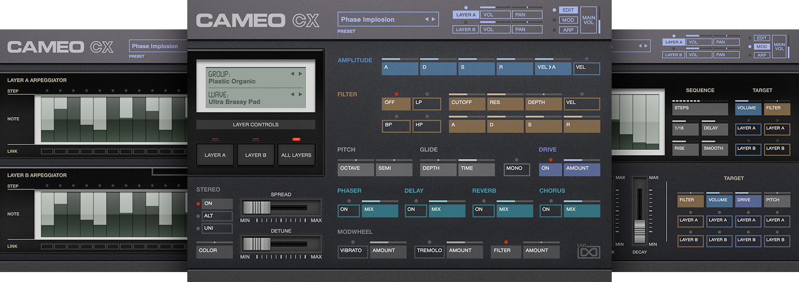 The Cameo CX is a dual-layer instrument with a large catalog of sounds and raw waveforms captured directly from the hardware instruments. According to UVI, a hybrid methodology takes these raw waves as the basis for sound design within a modern digital environment, resulting in a wide variety of tones covering ground from vintage-inspired sounds to digital bliss, allowing users to explore the factory presets or design their own sounds from scratch with the raw waveforms.